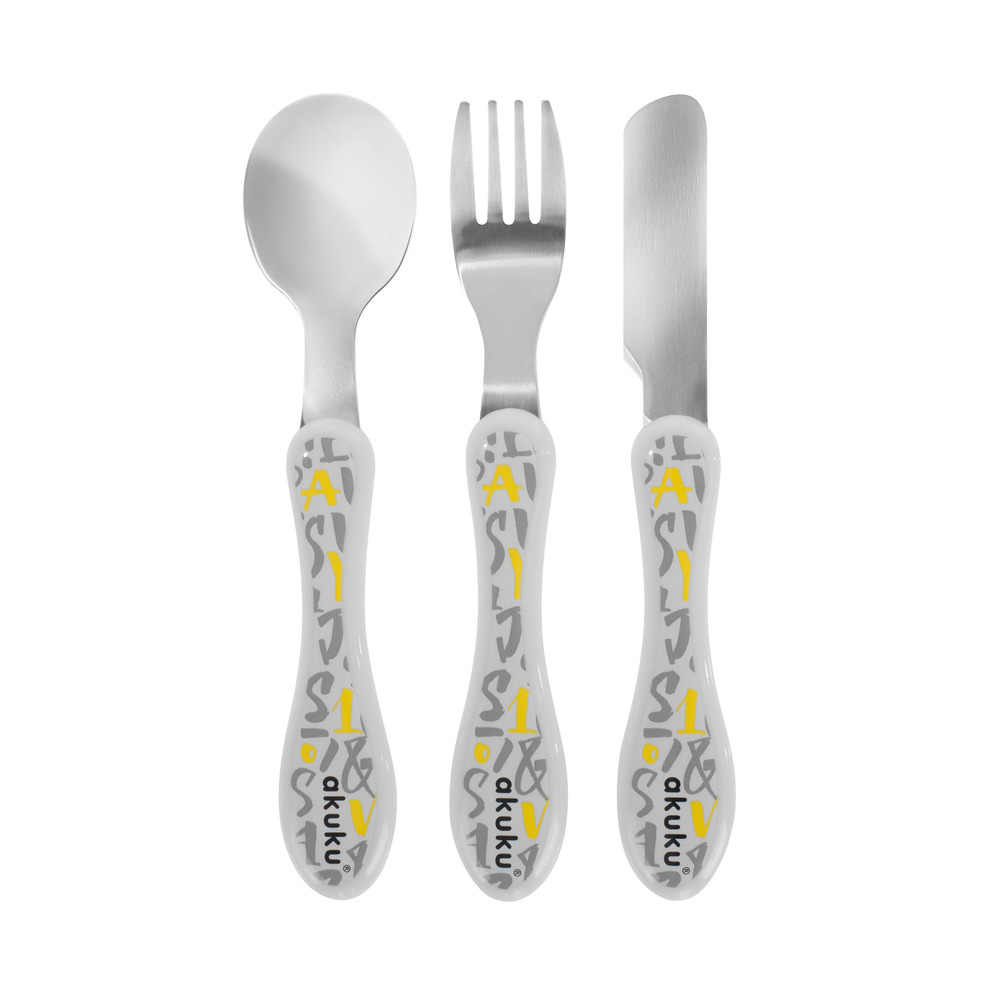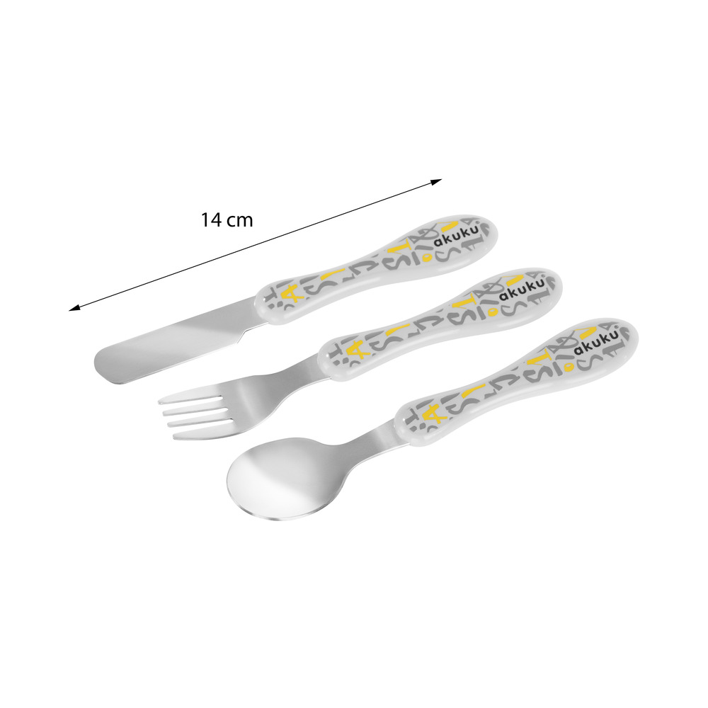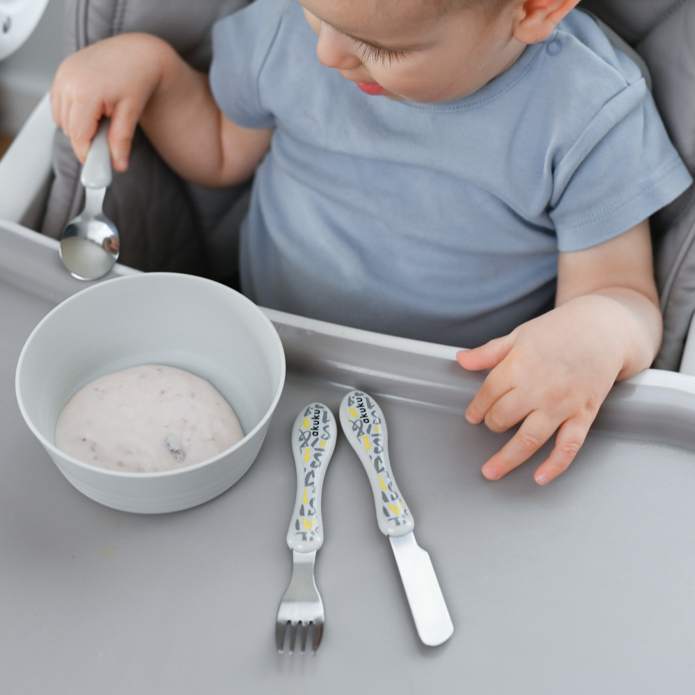 Praktično i udobno. Idealno za učenje samostalnog jedenja. Oblik je prilagođen malim rukama. Izrađeno od visokokvalitetnog nehrđajućeg čelika, od sigurnih materijala prehrambene kvalitete. Ne sadrži bisfenol A.