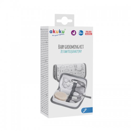 Škare (s tankim metalnim oštricama i zaobljenim rubovima) i grickalica pomoći će vam da sigurno irežete nokte, a rašpica za nokte lako će ukloniti neravnine na noktu, štiteći dijete od grebanja. Za bebinu glavicu pobrinut će se mekana četka od prirodnih vlakana i češalj. Aspirator s mekanim vrhom namijenjen je čišćenju dišnih puteva.