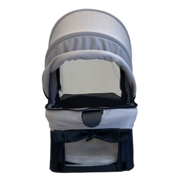 Krošnje su proširive, s UV zaštitom i ventilacijskim otvorima, pružajući zaštitu i udobnost tijekom svih godišnjih doba. Uz to, kolica dolaze s čvrstim kotačima otpornim na bušenje. Kotači su izrađeni od visokokvalitetne gume, a prednji se rotiraju i mogu se zaključati za stabilnost na neravnom terenu.