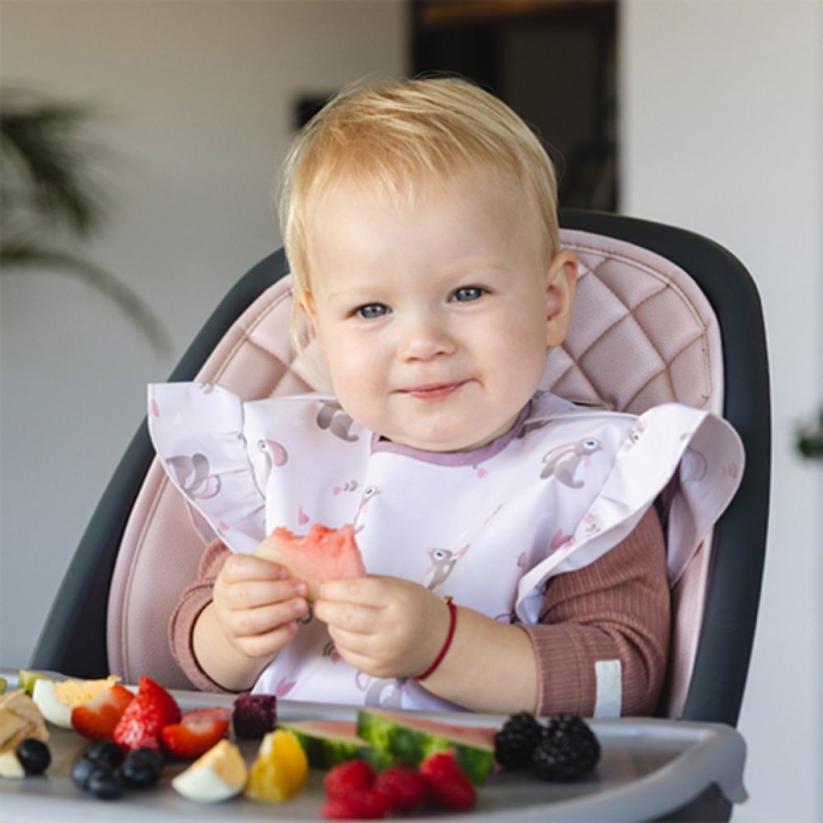 Podbradak košuljica je vodootporna i lako se čisti, što ju čini izuzetno korisnom prilikom učenja samostalnog hranjenja. Zahvaljujući podesivom kopčanju, lako se prilagođava vratu vašeg djeteta. Idealan je izbor za korištenje kod kuće i u vrtiću.