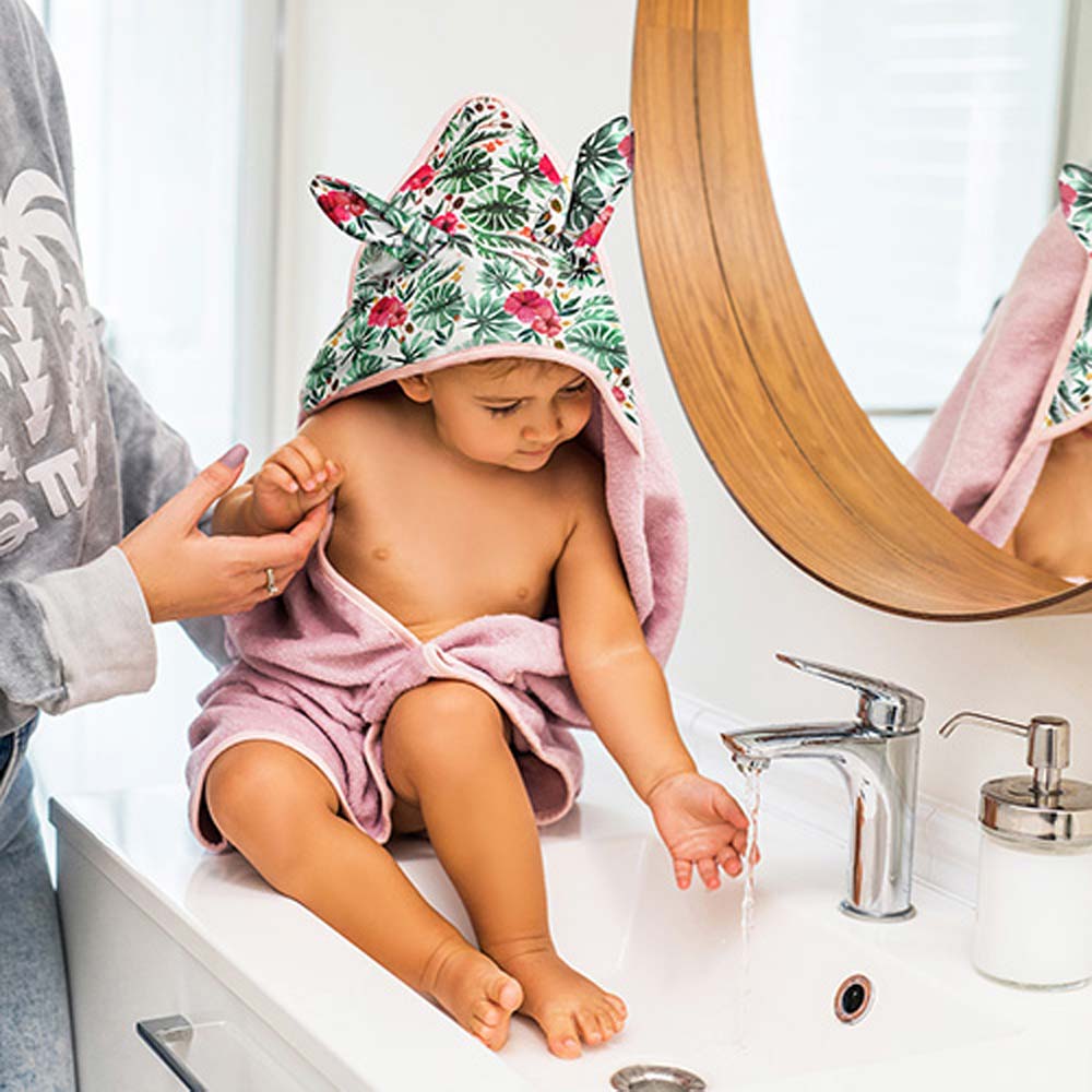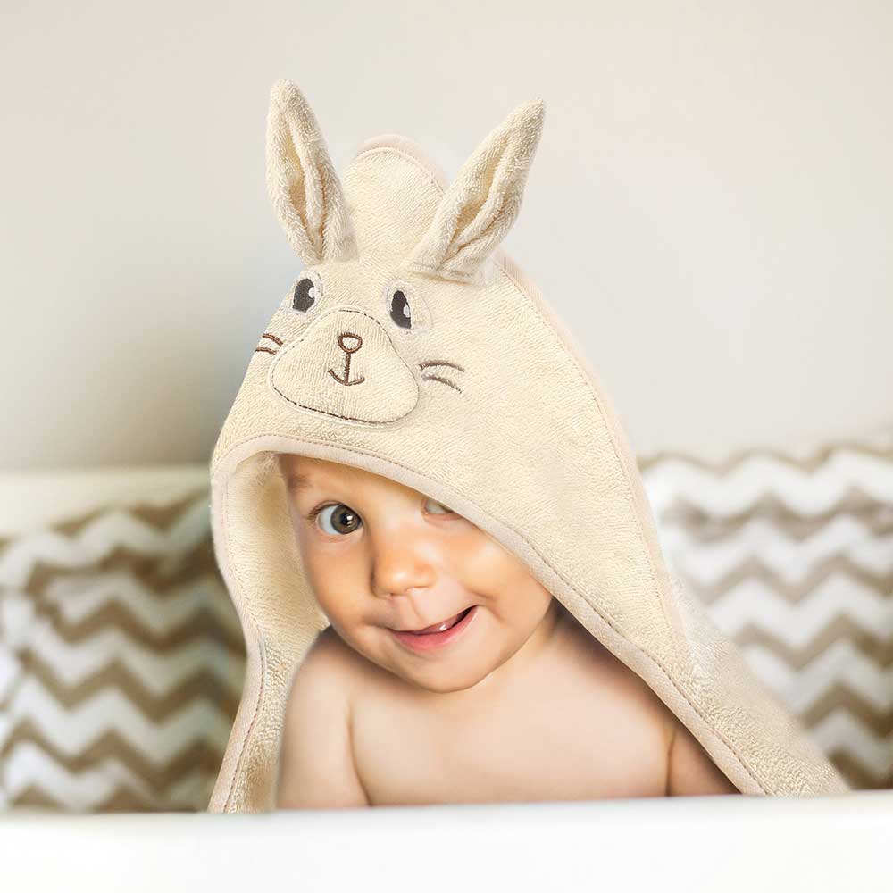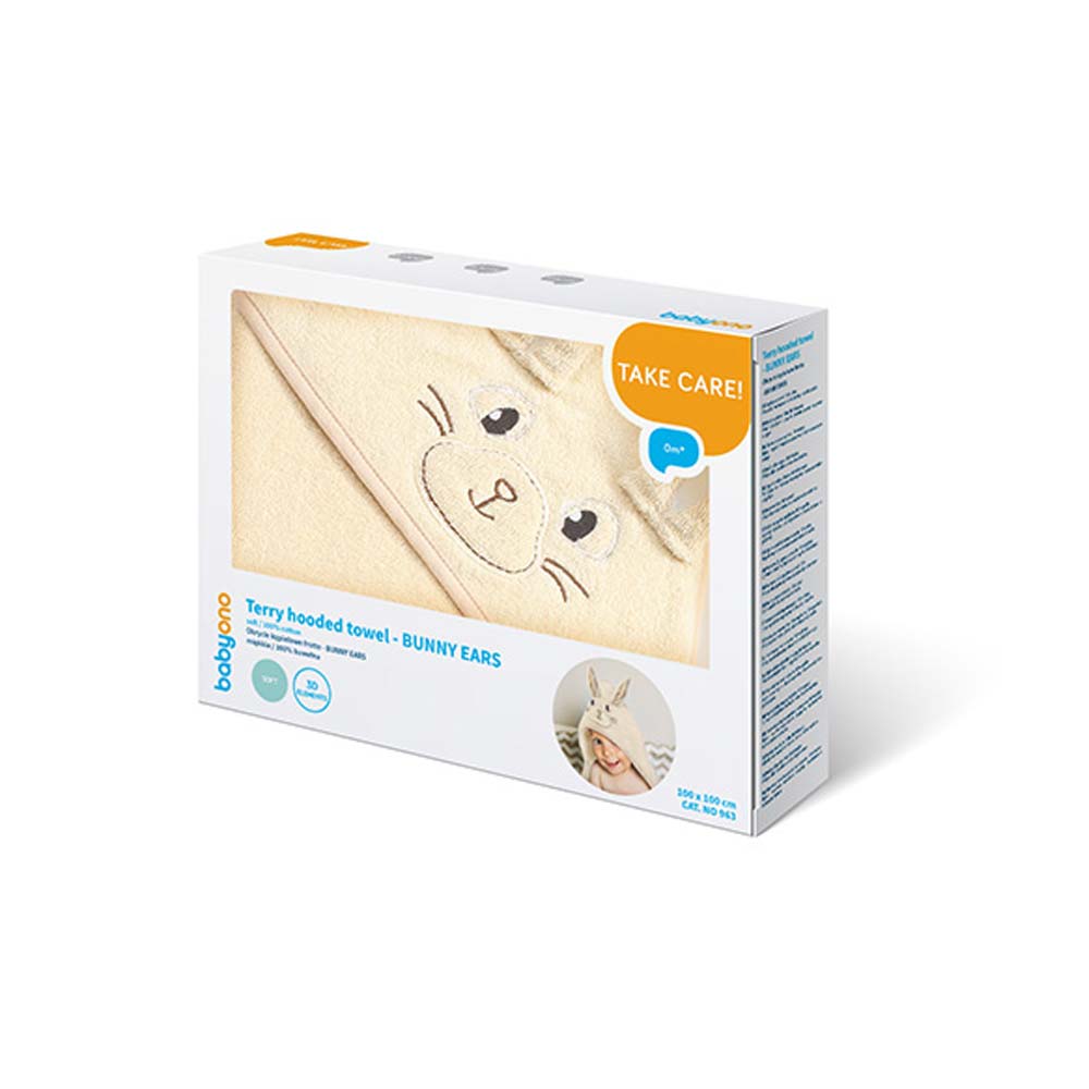 Kratki opis: BUNNY EARS je mekan ručnik za kupanje s 3D elementima (ušima), pakiran u ukrasnu kartonsku kutiju. Pruža udobnost i njeguje osjetljivu kožu Vaše bebe nakon kupanja. Ručnik savršeno upija vlagu i štiti dijete od hlađenja.