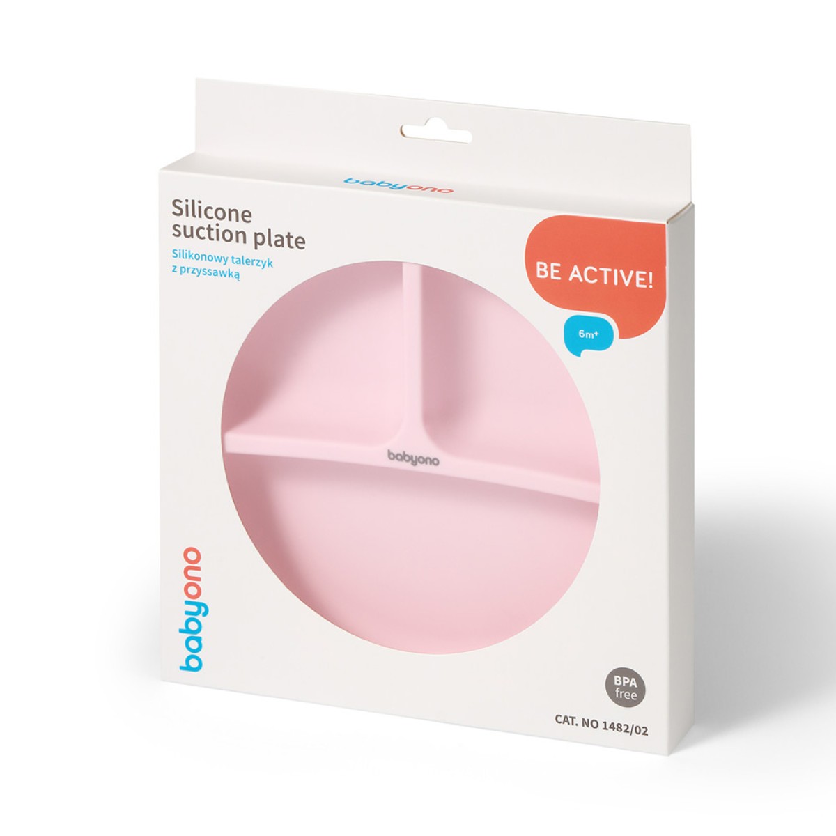 Babyono silikonski tanjur s odjeljcima savršen je kada beba počinje samostalno jesti. Zahvaljujući vaakum podlozi, rizik od prolijevanja ili pada tanjura je minimalan. Ergonomski oblik proizvoda olakšava bebi uzimanje hrane. Tri praktična odjeljka potiču bebu da isproba različite vrste hrane. Izrađen od visokokvalitetnog silikona, tanjur je siguran za zdravlje i lako se čisti. Može se prati u perilici posuđa i zagrijavati u mikrovalnoj pećnici.