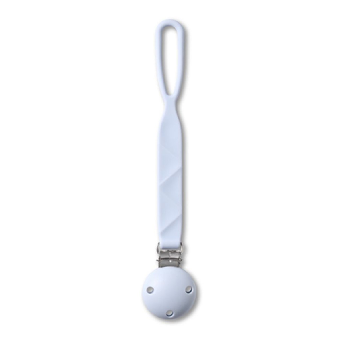 Silikonski privjesak za dudu s kopčom opremljen je jednostavnim sustavom za pričvršćivanje. Samo jednom rukom možete pričvrstiti privjesak na djetetovu odjeću, torbu ili kolica. Koristan je kod kuće, u šetnji i na putovanju — gdje god želite imati dudu uvijek pri ruci.