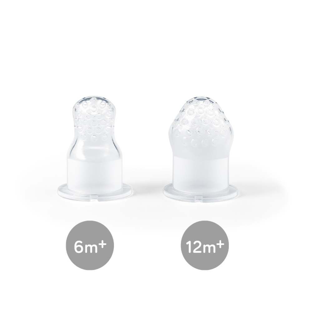Set uključuje dvije veličine sisača (6 i 12 mjeseci) što vam omogućuje da proizvod prilagodite dobi i vještinama djeteta.