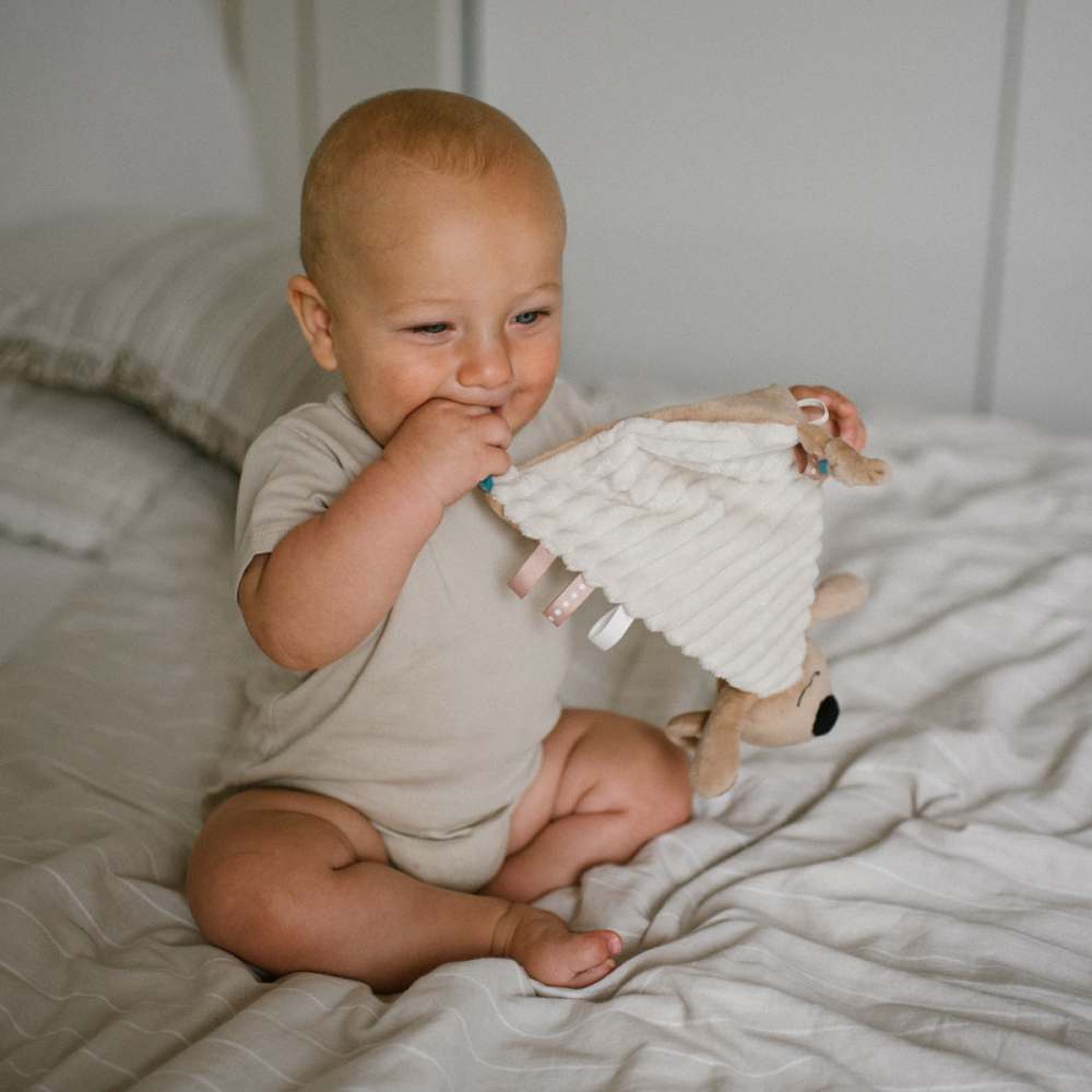 Kratki opis: Koala Charlie kombinacija je dekice i tješilice. Izrađena je od mekanog, plišanog materijala. Duge ruke i šarene oznake pomažu bebi da svlada spretnost.