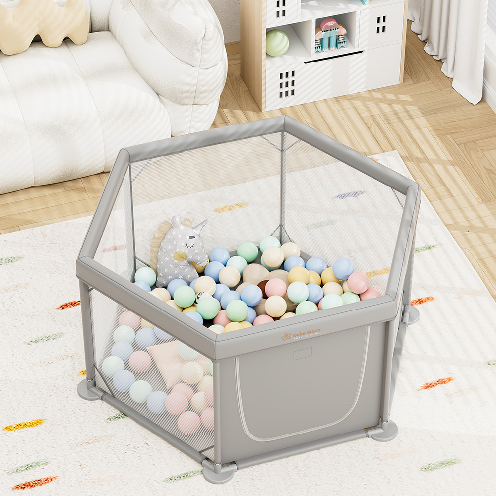Kratki opis: Nova višenamjenska platnena ogradica Cool marke BebeStars dizajnirana je u obliku šesterokuta, tako da ne zauzima puno prostora u sobi, ali pruža dovoljno prostora za djecu tijekom igre.