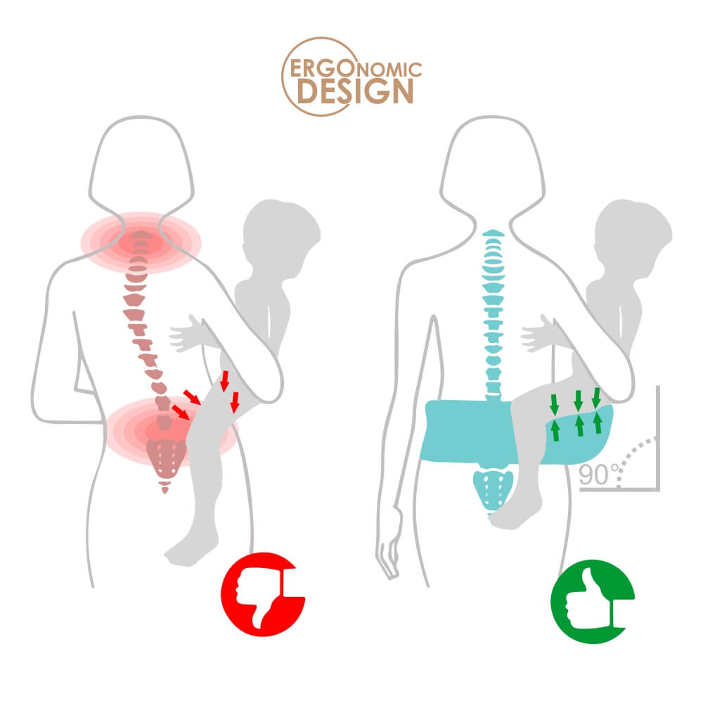 Nudi pravu potporu bebinim nožicama i jača pravilan razvoj bedrenih ligamenata, što je vrlo važno u prvim mjesecima bebinog života (hip-healthy od Međunarodnog instituta za displaziju kukova).