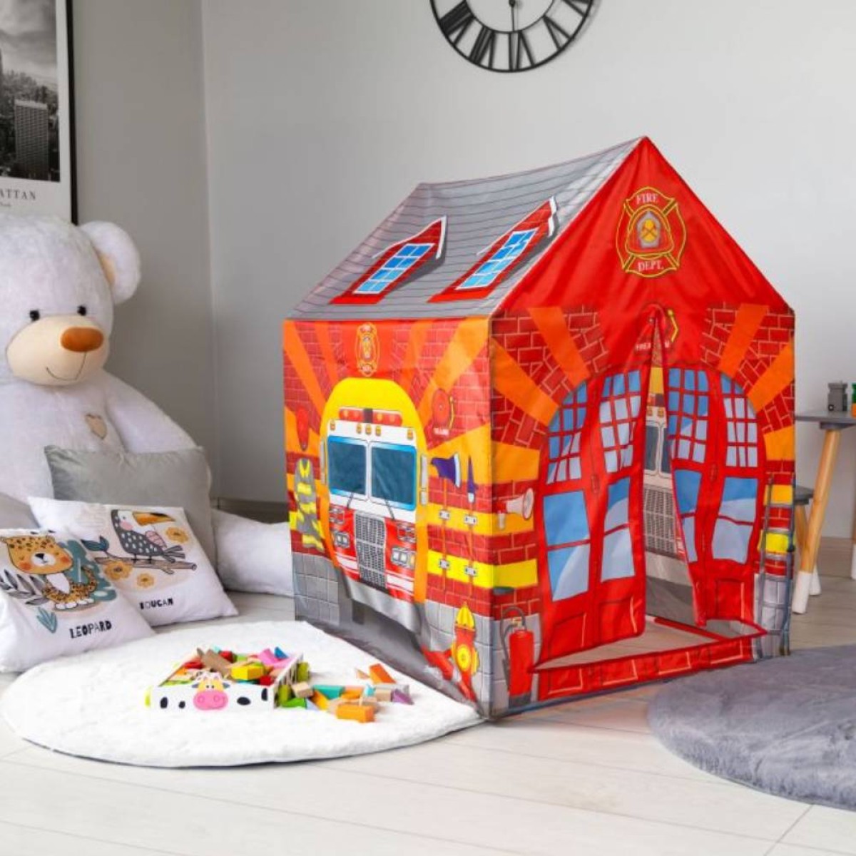 Šator vatrogasna postaja omogućit će vašem djetetu da se igra vatrogasca. Šator će brzo postati djetetovo omiljeno mjesto za igru i zabavljat će se satima.