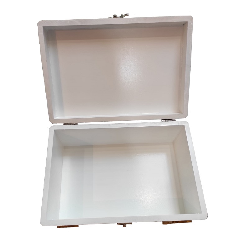 Bijeka kutija s blijedo rozim detaljima.