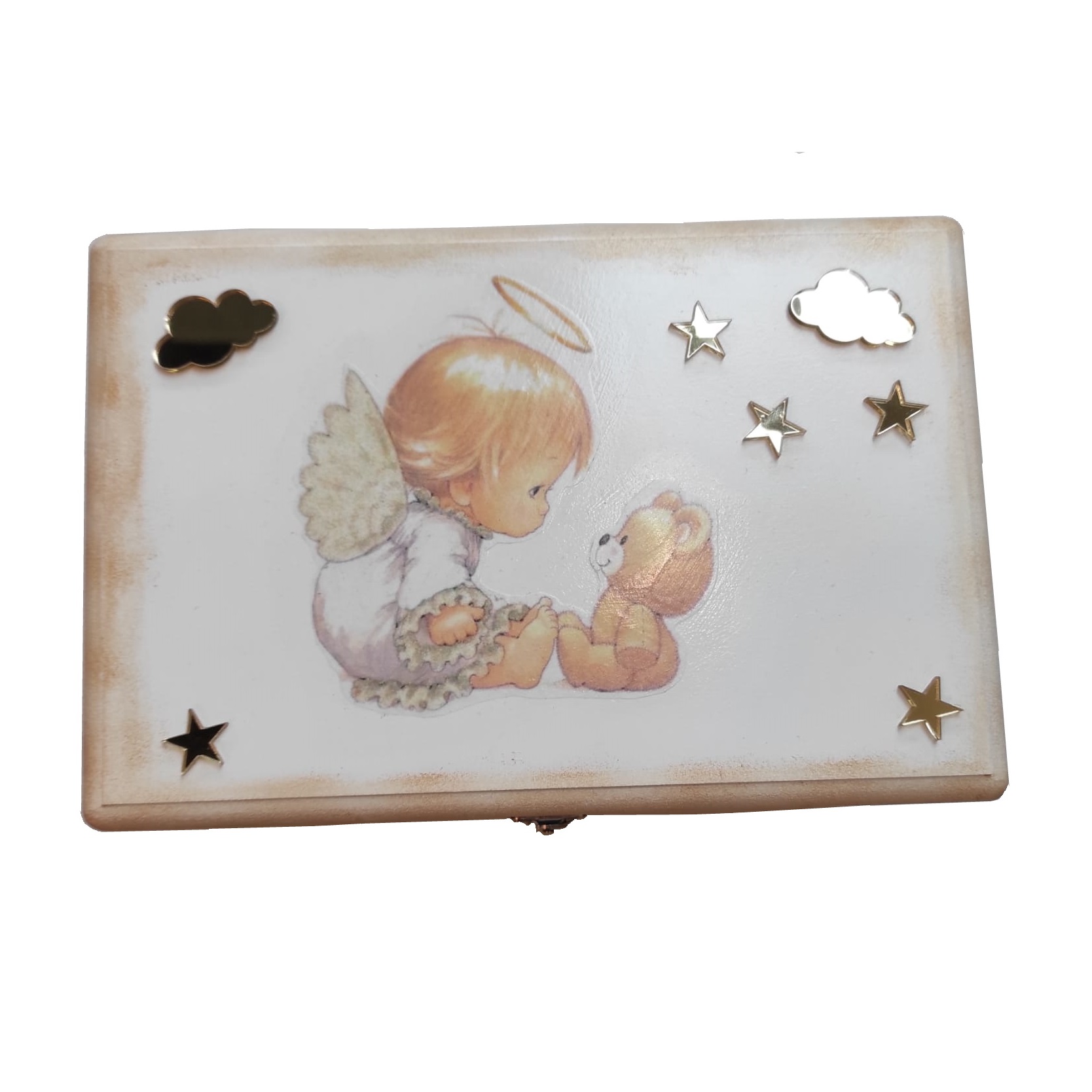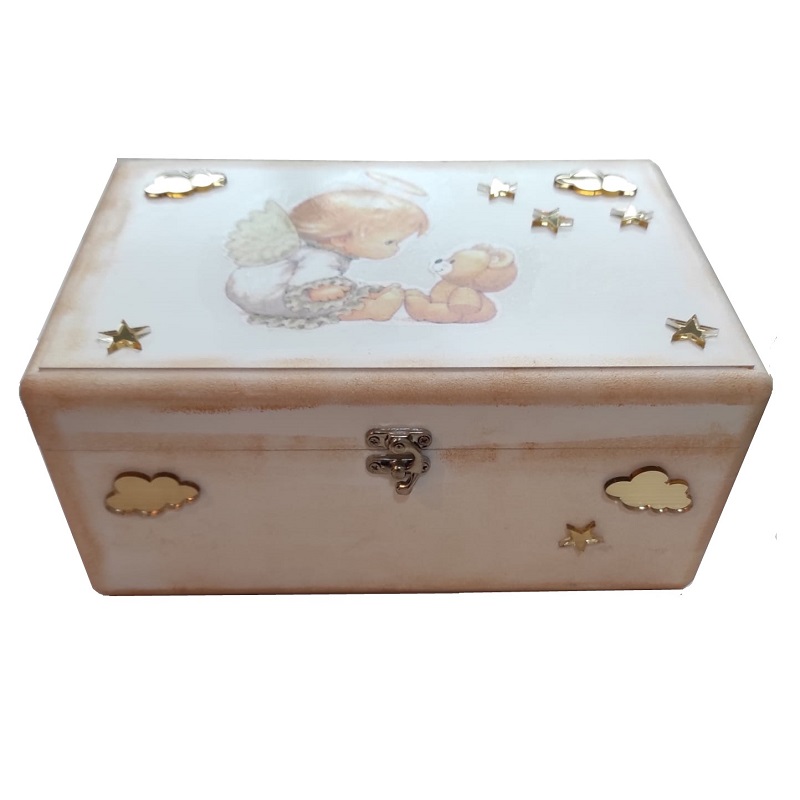 Kratki opis: S oblacima i slatkim anđelom, kutija za uspomene čuvat će Vaše najdraže sitnice.