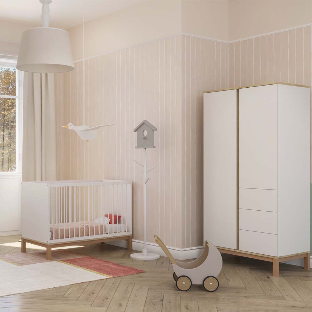 Iza dvojih vrata i tri ladice Loop ormara skriva se veliki prostor za spremanje dječjih stvari. Uz ormar dolaze 3 fiksirane police, 3 police koje možete razmjestiti kako vama odgovara i 2 šipke za vješanje odjeće. Vrata ormara nemaju klasične ručke nego okomitu pregradu koja je moderna, a ujedno i sigurnija za djecu. Loop ormar savršen je izbor za dječju sobu, a njegov bezvremenski dizajn jamči vam da će vaše dijete voljeti ovaj ormar i kada poraste.