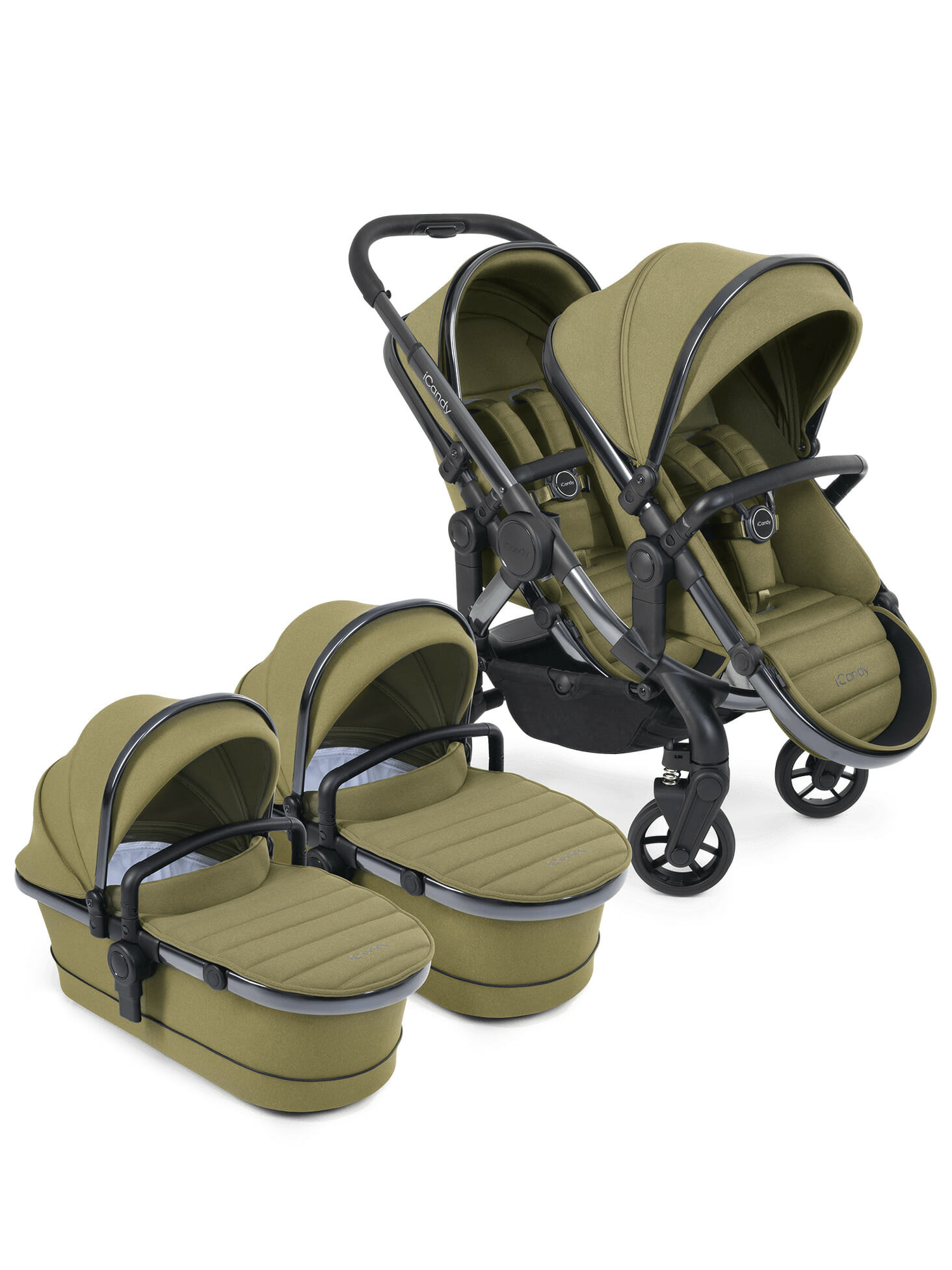 Uživajte u svakom trenutku vozeći istovremeno svoje blizance u 2 košare za novorođenče, u 2 autosjedalice ili pak u dva sjedeća dijela. I pritom ne brinite – iCandy kolica ponosno prolaze kroz skoro sva vrata jer postavljanjem druge košare/autosjedalice/sjedećeg dijela, širina kolica i dalje ostaje jednaka!