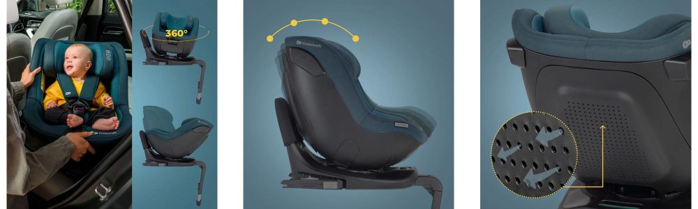 – ovaj sustav rotacije 360° olakšat će vam svakodnevne vožnje s djetetom. Gumb za promjenu položaja je lako dostupan i praktičan: da biste smjestili svoje dijete, samo trebate pritisnuti gumb i okrenuti autosjedalicu prema sebi. Sustav također omogućuje brze promjene ukupnog položaja autosjedalice (RWF i FWF) bez potrebe za uklanjanjem.