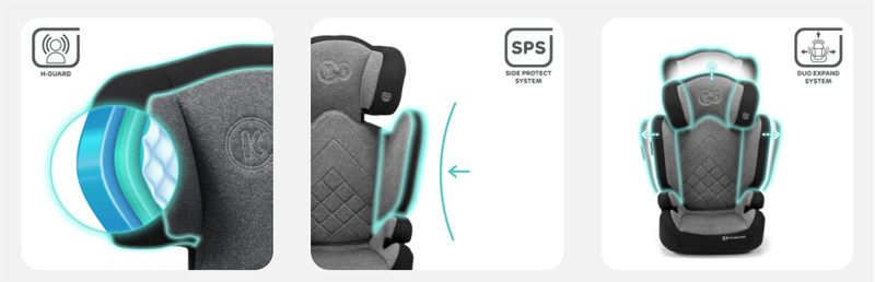 U automobil se montira auto pojasom i isofix sustavom ili samo auto pojasom. Posebni indikatori pokazat će je li sjedalo ispravno pričvršćeno na isofix. Naslon u sjedalu je nagnut kako bi najbolje pristajao sjedalu u automobilu. Naslon za glavu je širok i dubok, pomoći će Vam da budete udobni tijekom spavanja. Osim toga, njegova unutrašnjost izrađena je od memorijske pjene, savršeno štiti u slučaju sudara, upija energiju i sprječava da dopre do djetetove glave. Autosjedalica Kinderkraft XPAND 2 ima automatsko podešavanje visine i širine Duo Expand sustava. Prilikom podešavanja naslona za glavu mijenja se širina bočnih presvlaka kako bi se djetetu pružila maksimalna udobnost i praktičnost. Nova verzija SPS sustava osigurat će maksimalnu sigurnost u području bočne zaštite. Autosjedalica Kinderkraft XPAND 2 u skladu je s najnovijim i-Size standardom. Ako nam trenutno ne treba, možemo ga sklopiti i time štedimo prostor.