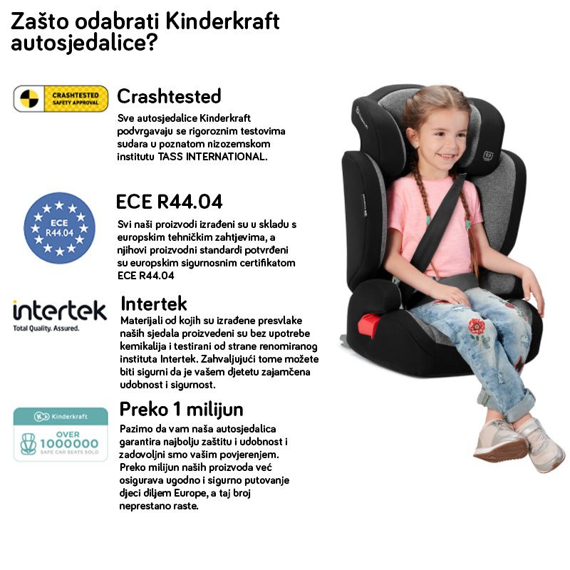 Kratki opis: Autosjedalica namijenjena djeci visine od oko 100 do 150 cm.