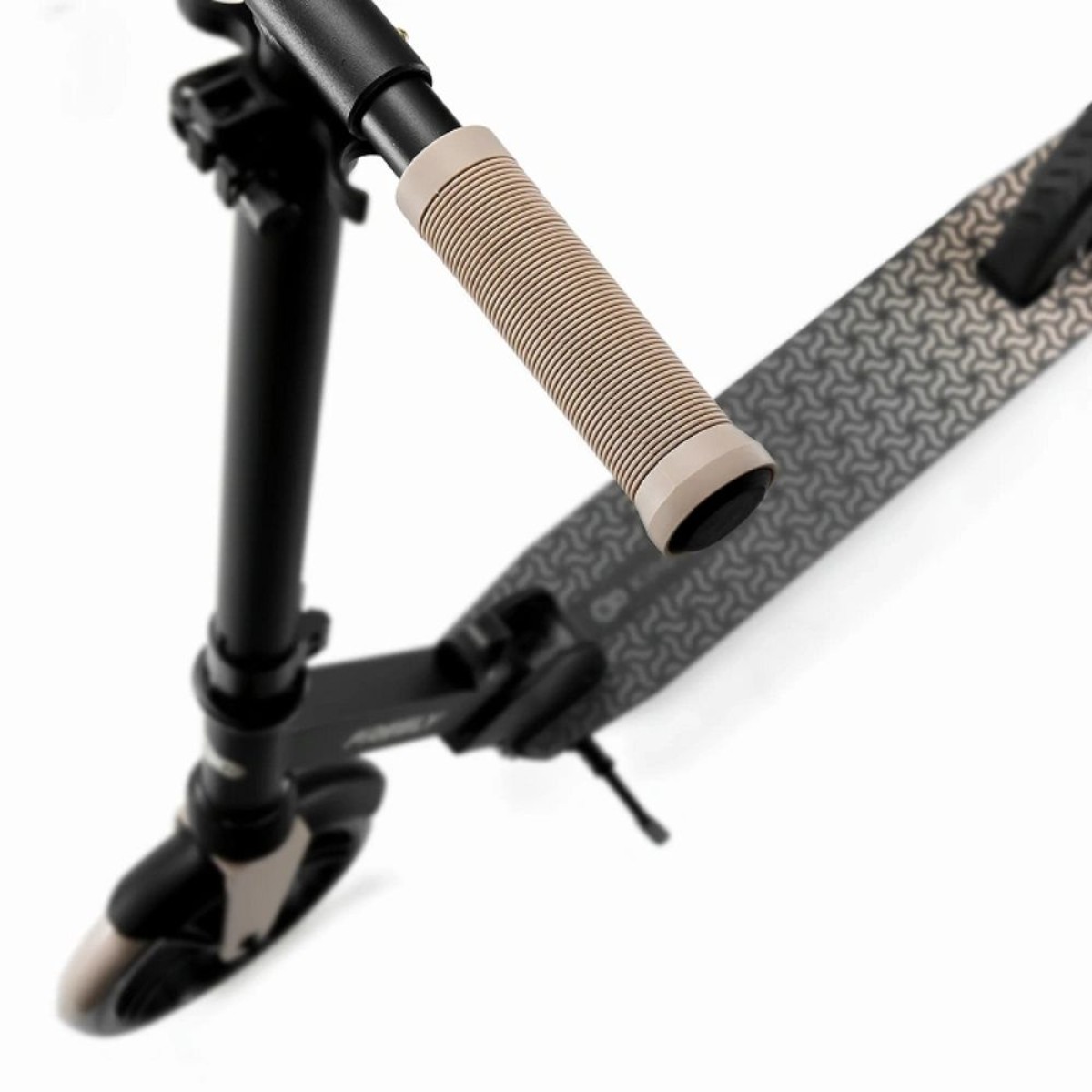 Romobil ima ergonomski dizajnirane ručke koje omogućuju lako i udobno držanje, dok velika platforma za noge osigurava stabilnost i sigurnost tijekom vožnje.