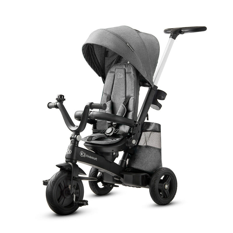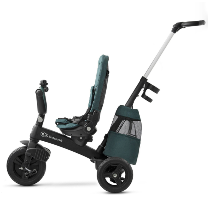 Udobnost u svakoj situaciji – uz okretno sjedalo, tricikl ima i visok naslon koji ima opciju nagiba, pa se može spustiti u polu-ležeći položaj, što je idealno za drijemanje. Šipka je presvučena eko kožom koja je udobna na dodir, dok je držač za stopala idealan kad se vaše dijete želi odmoriti od pedaliranja.