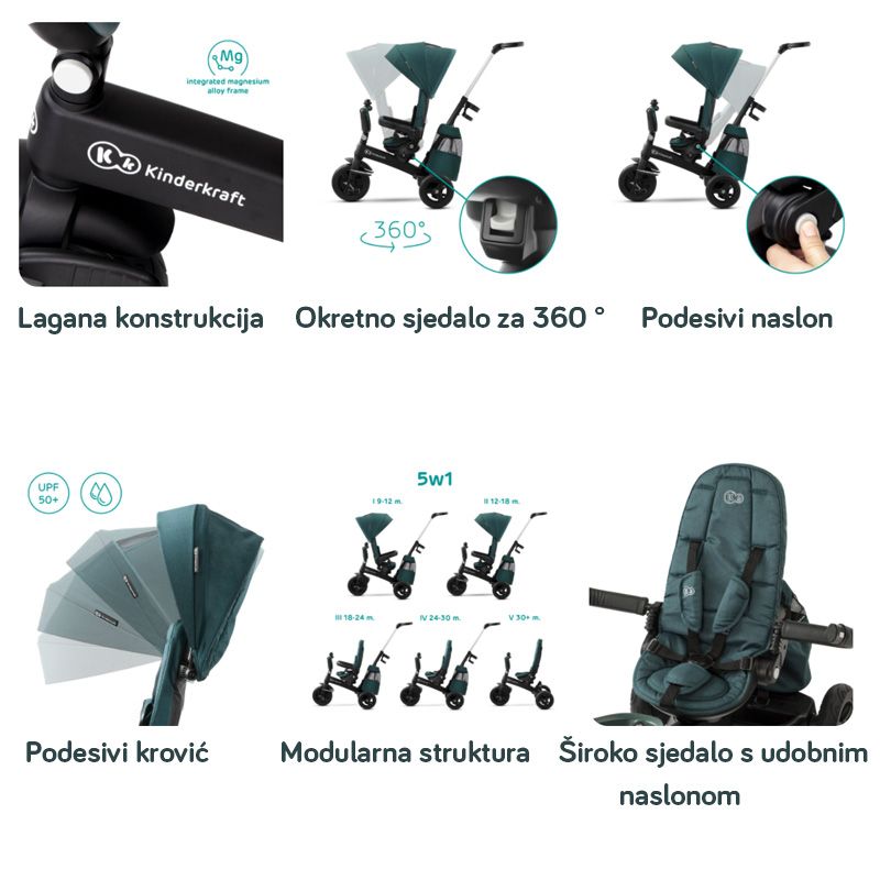 Učenje kroz igru već od devet mjeseci starosti – djeca žele biti neovisna te razviti nove sposobnosti. Ovaj im tricikl daje tu mogućnost, s obzirom na to da ima opciju “slobodnog kotača” koja će djecu naučiti sigurnom pedaliranju bez da je tricikl u pogonu.