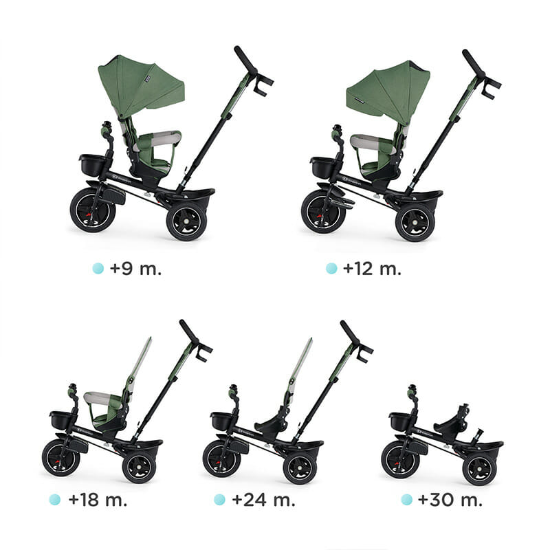 Kratki opis: Uživajte provodeći vrijeme na otvorenom zajedno sa svojim djetetom i otkrijte prednosti koje Spinstep 5-u-1 tricikl može donijeti! Ovaj tricikl će rasti s vašim djetetom, a zahvaljujući modularnom okviru, rastavljanje pojedinih elemenata je jednostavno i brzo. To vam omogućuje da jednostavno prilagodite tricikl sve većim vještinama vašeg djeteta bez upotrebe alata. Osim toga, zahvaljujući dubokom, vodootpornom kroviću od UPF50+ materijala, kišica ili vruće sunce neće predstavljati prepreku!