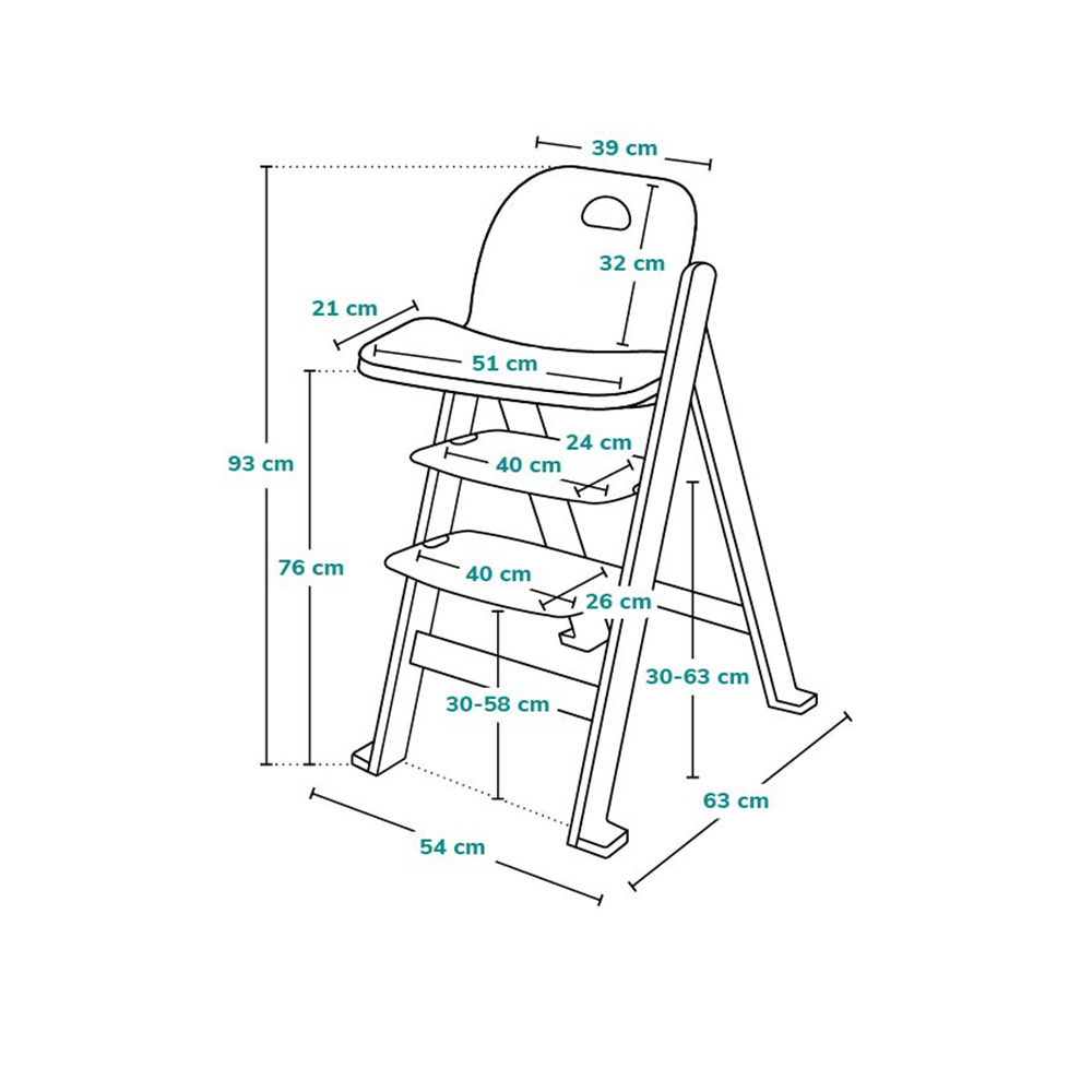 Naslon hranilice opremljen je posebnim držačem za lakši transport. Pladanj se može odložiti sa stražnje strane hranilice kada se ne koristi. Prigušene boje i moderni dizajn hranilice dobro se uklapaju u svaki interijer.