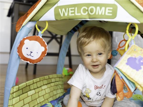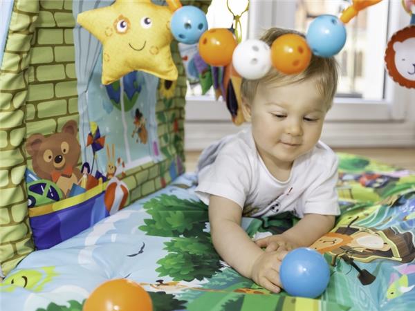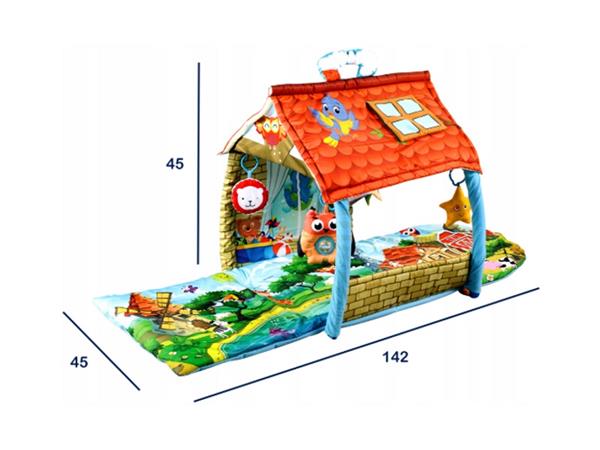 Zahvaljujući savitljivim stranicama i vršnom dijelu, prostirka se može pretvoriti u veliku kuću koja čini dječju igru mnogo privlačnijom.
