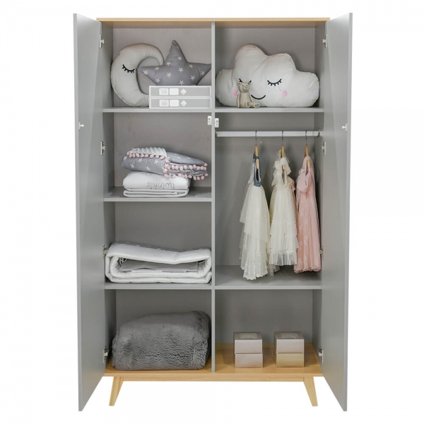Ima dvoja velika vrata, pet velikih polica i šipku za vješanje.