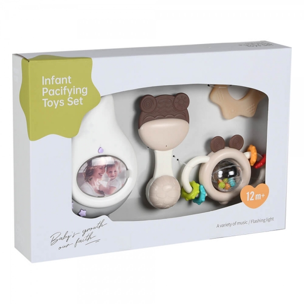 – Set uključuje noćnu lampu, žvakalice i zvečke. Svi su izrađeni od visokokvalitetnih materijala, neotrovni.