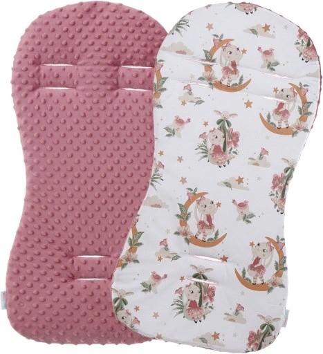 Mekani dvostrani umetak koji će vašem mališanu osigurati udobno putovanje , a pritom će kolica zaštititi od prljavštine i trošenja unutrašnjosti. Tijekom ljetnih šetnji, pamučna strana pružit će zaštitu od neugodnih presvlaka kolica, a u zimskim danima ugodna minky tkanina pomoći će u održavanju prave temperature.