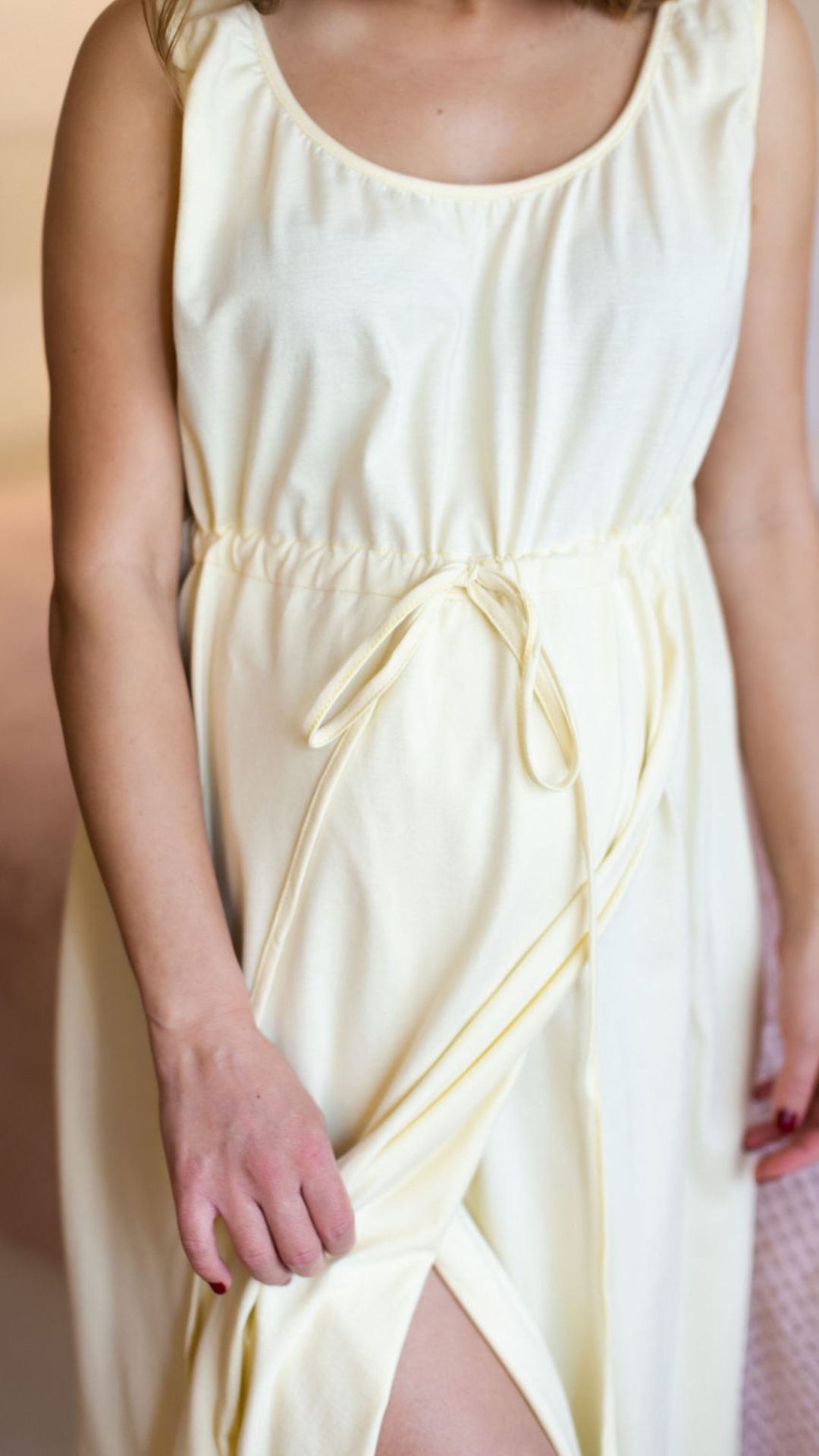Svojim krojem spavaćica je idealna za nošenje tijekom cijele trudnoće zbog mogućnosti prilagodbe širine struka kako raste dijete, ali i nakon poroda za dojenje.