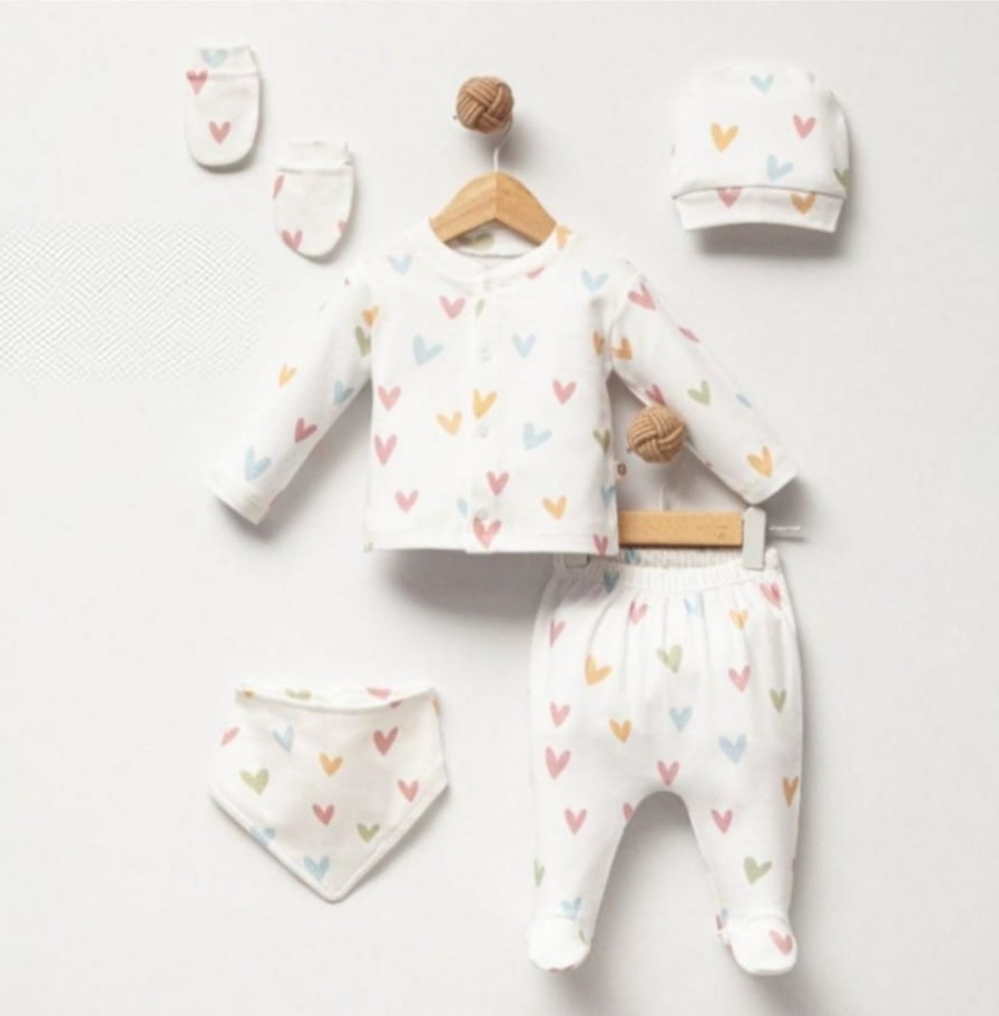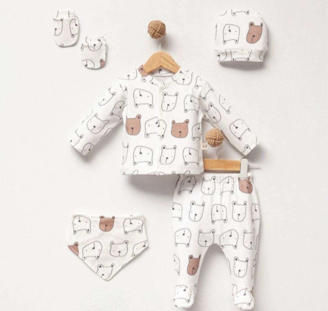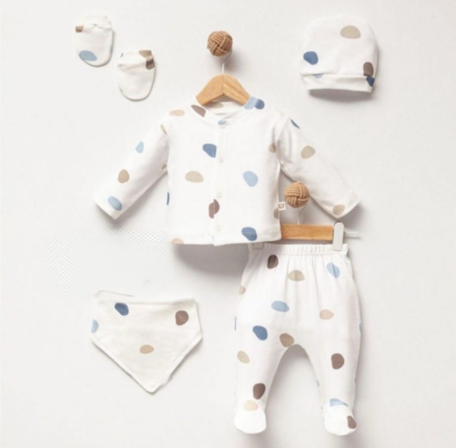Ovaj 5/1 set za izlazak iz bolnice sadrži benkicu, hlače, kapicu i rukavice. Set se koristi skroz do drugog/trećeg mjeseca rođenja čak i dulje. Odličan je za poklon kao i za prvo vrijeme, lako se oblači i skroz je praktičan.