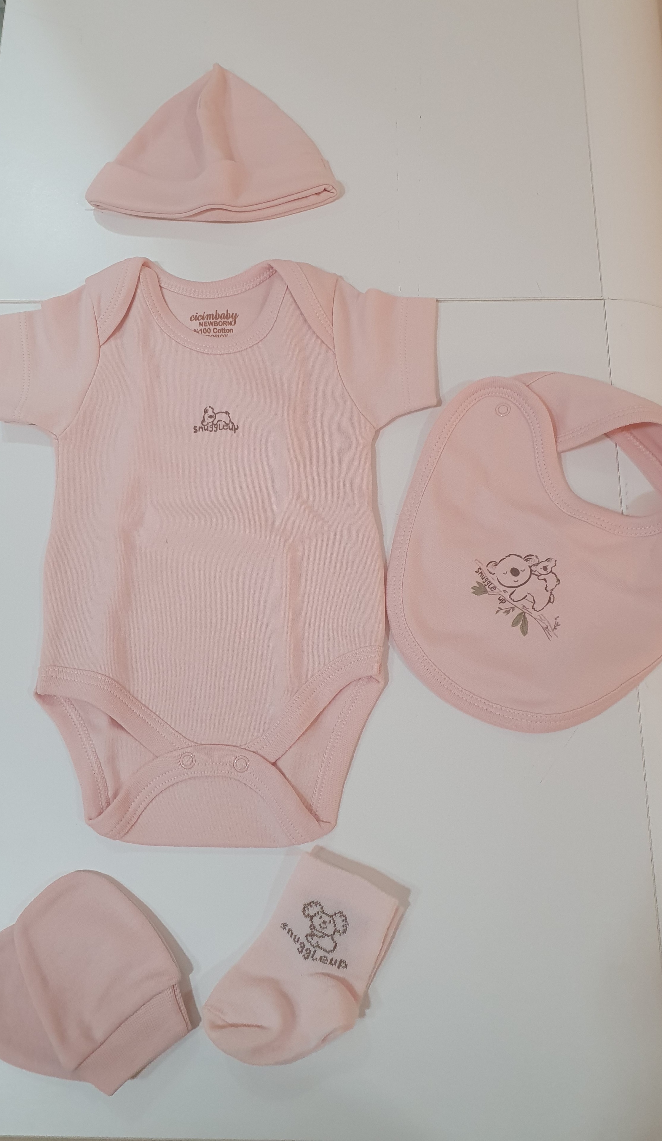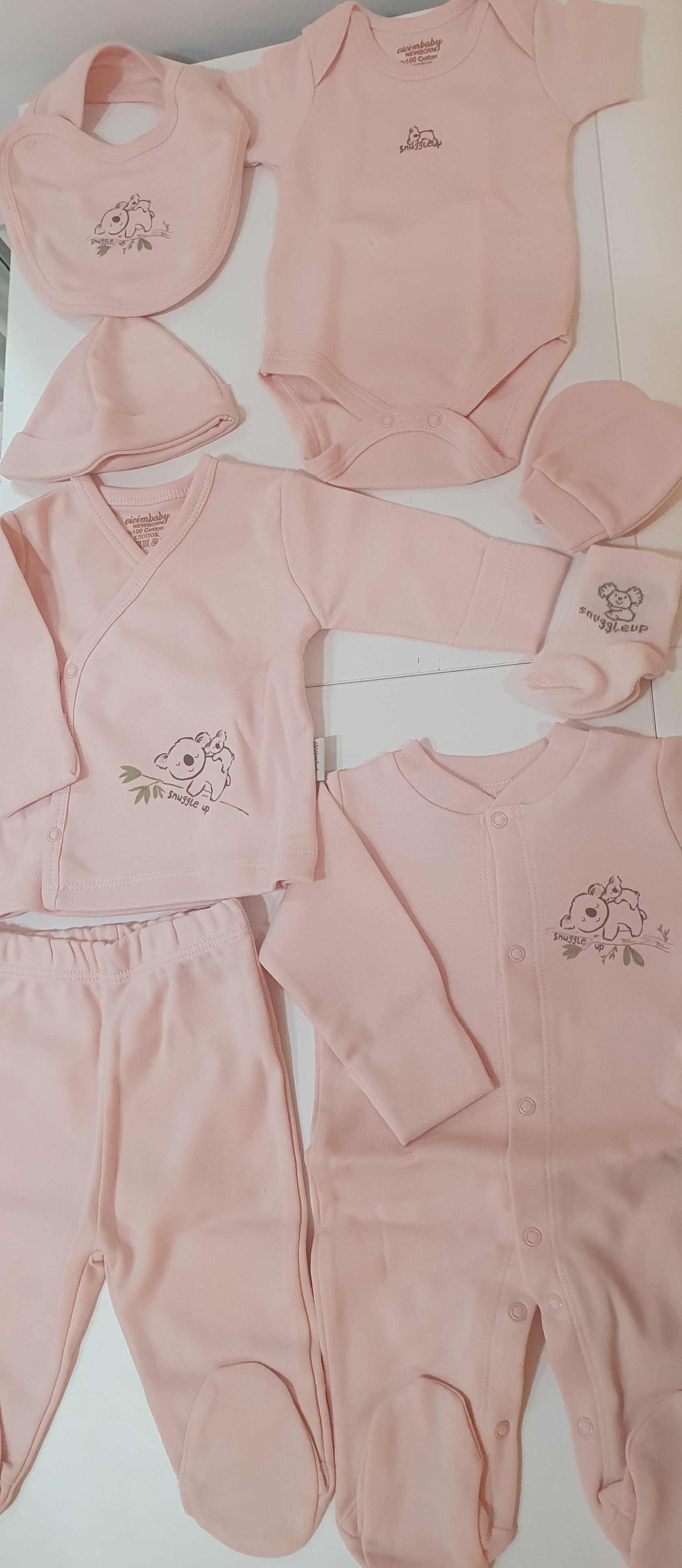 - dekica - podbradak - bodi s kratkim rukavima - kapica - rukavice - čarapice - hlačice - majica - pidžama