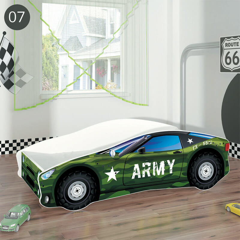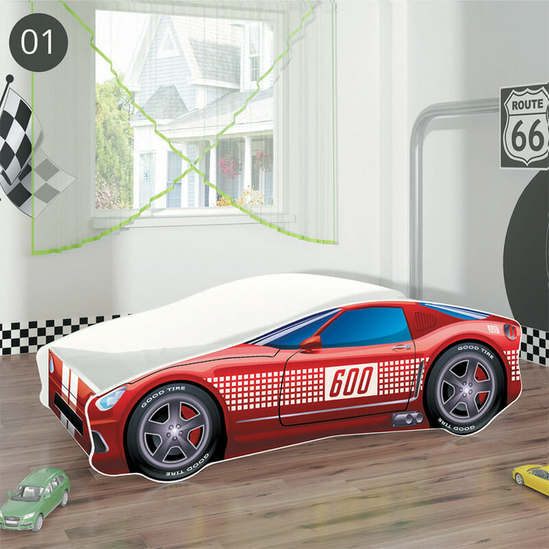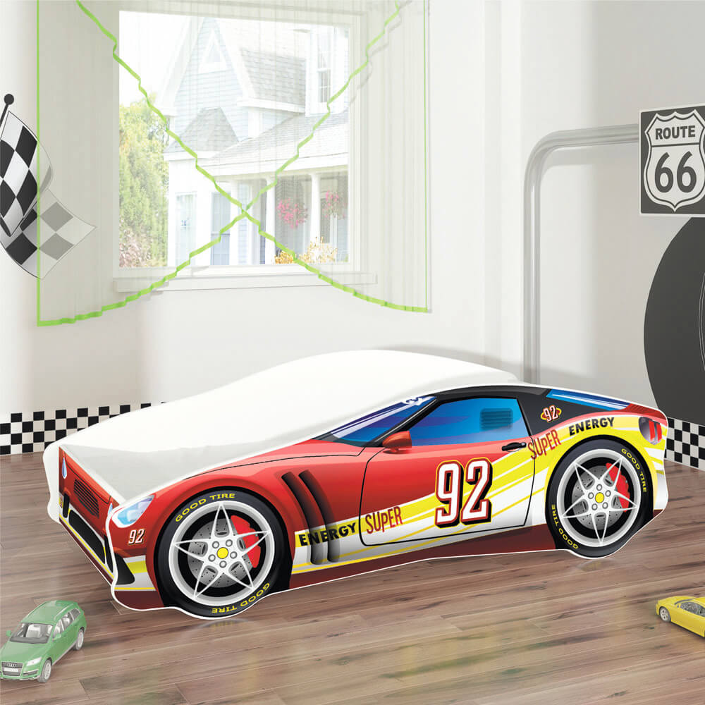 Kratki opis: Predivni dječji krevetić u obliku automobila sa raznim motivima. U pakiranju su uključeni i podnica (letvice), te spužvasti madrac debljine 7 cm sa skidivom navlakom