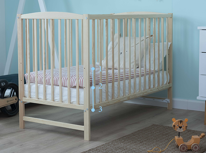 Uklonjive 3 prečke koje djetetu omogućuju slobodan ulazak i izlazak iz krevetića.