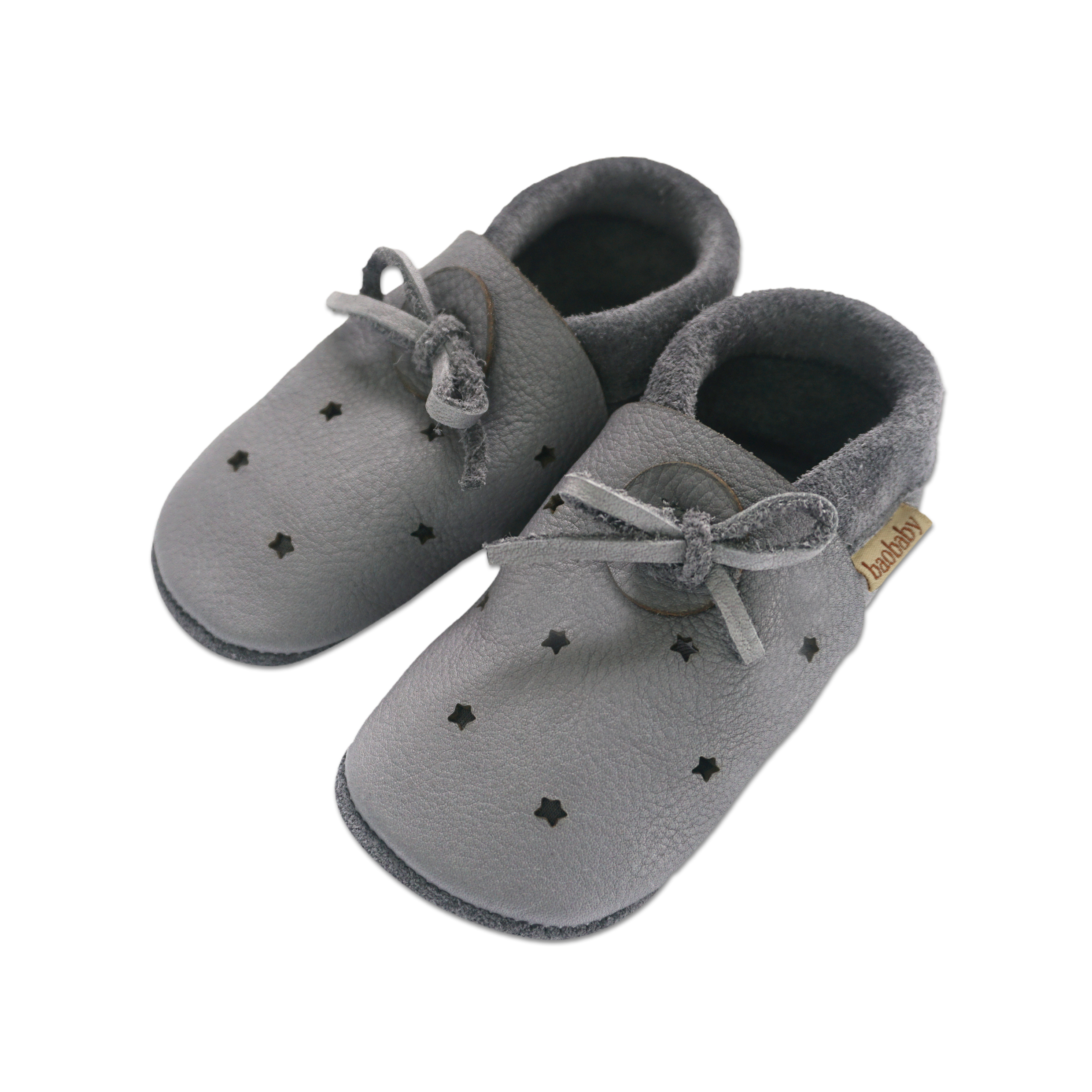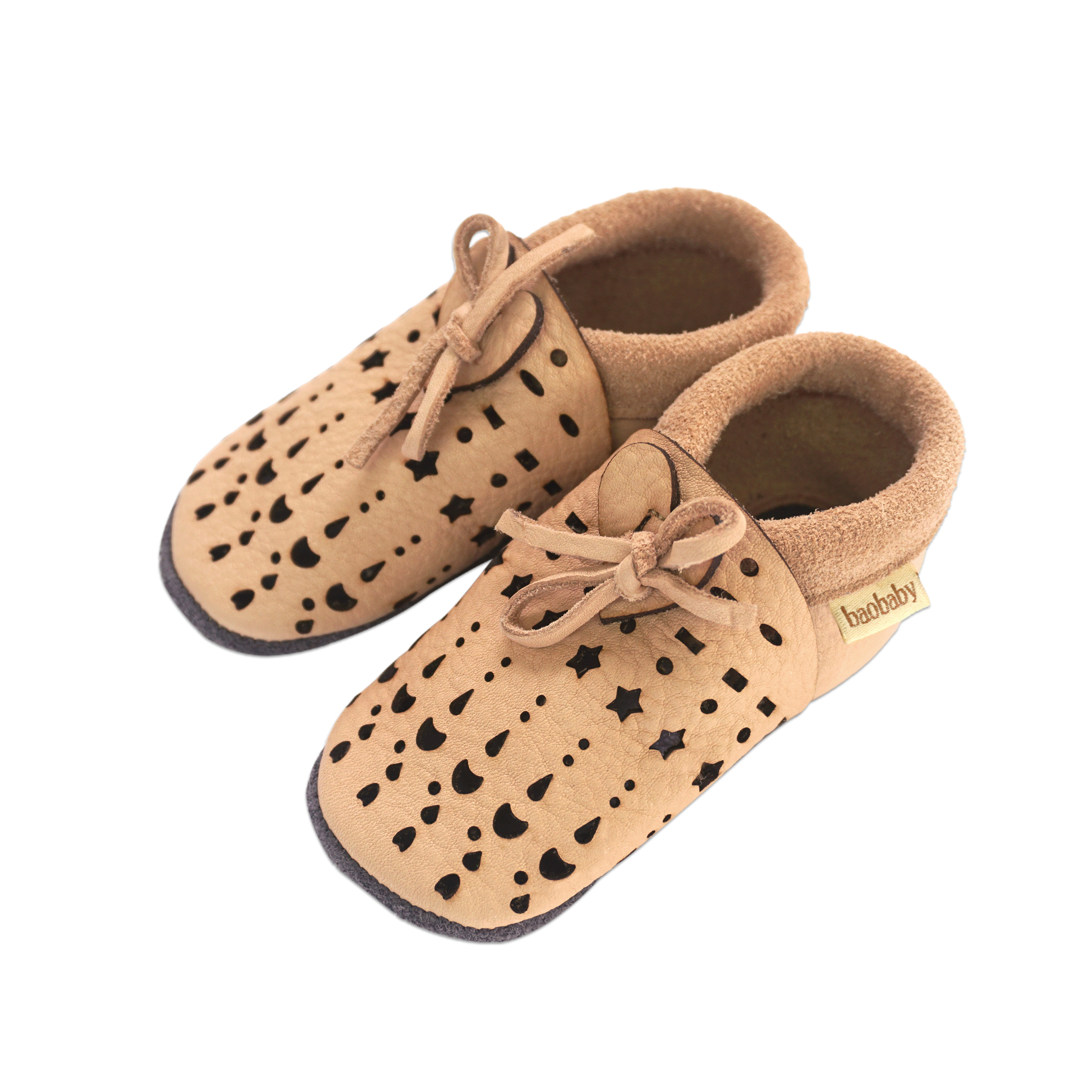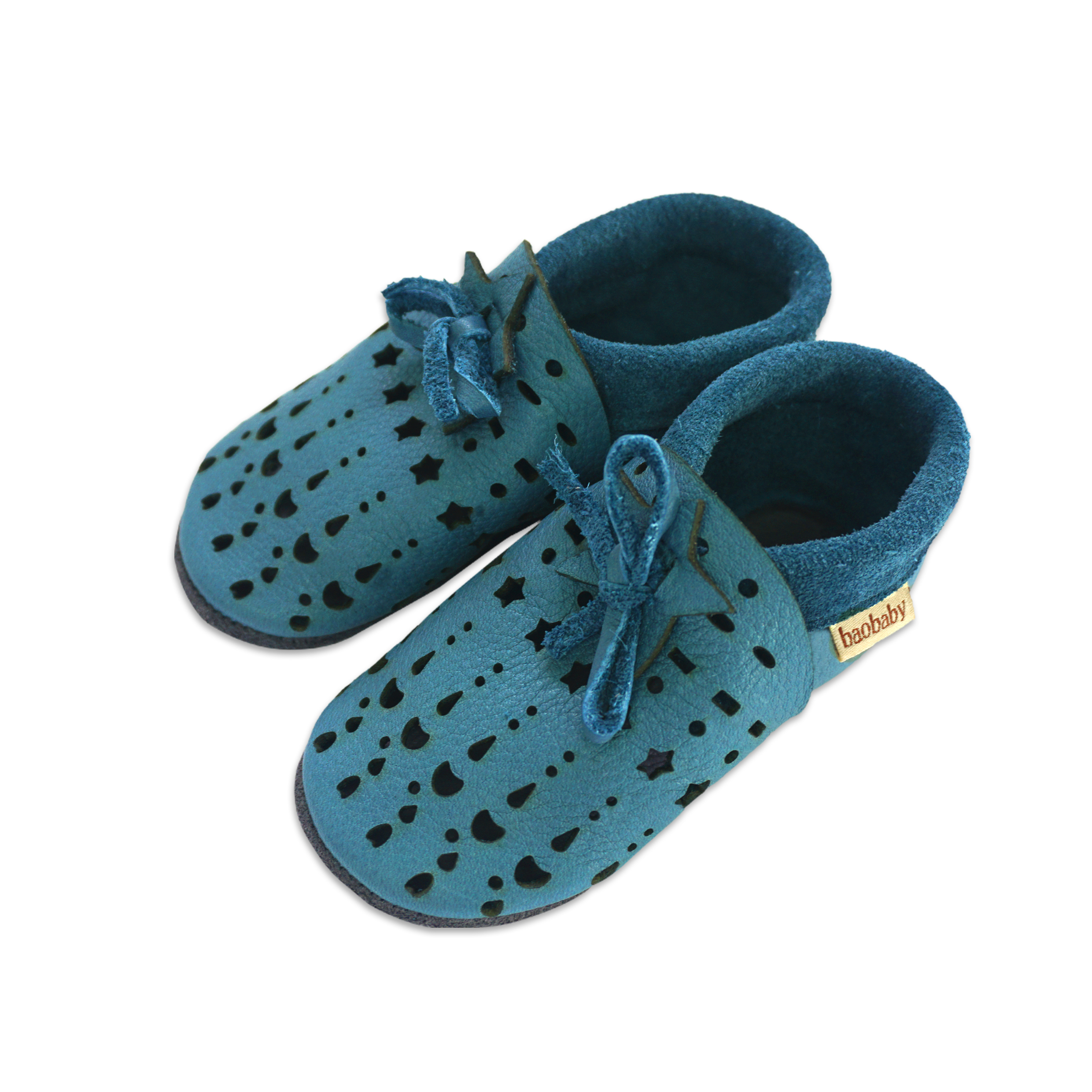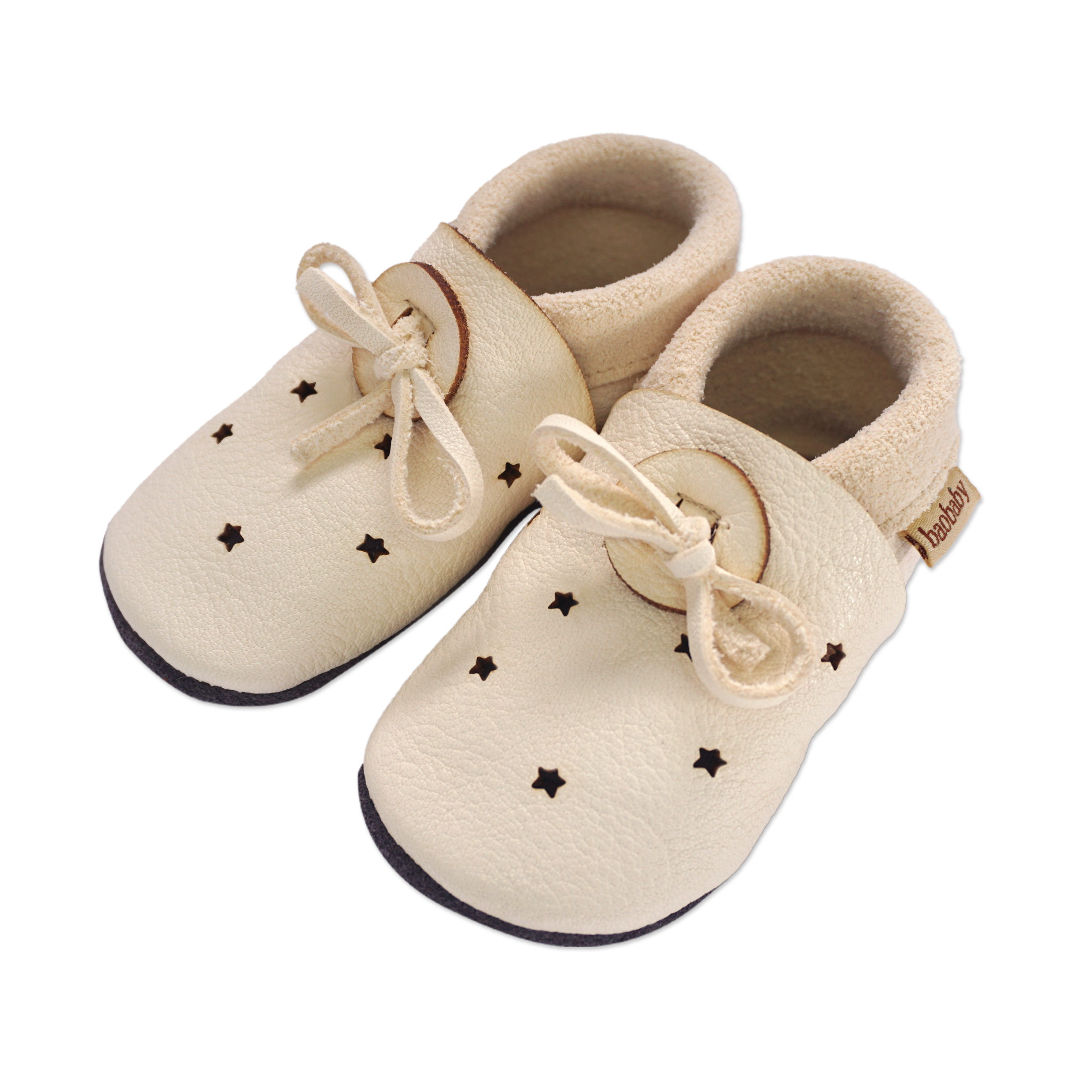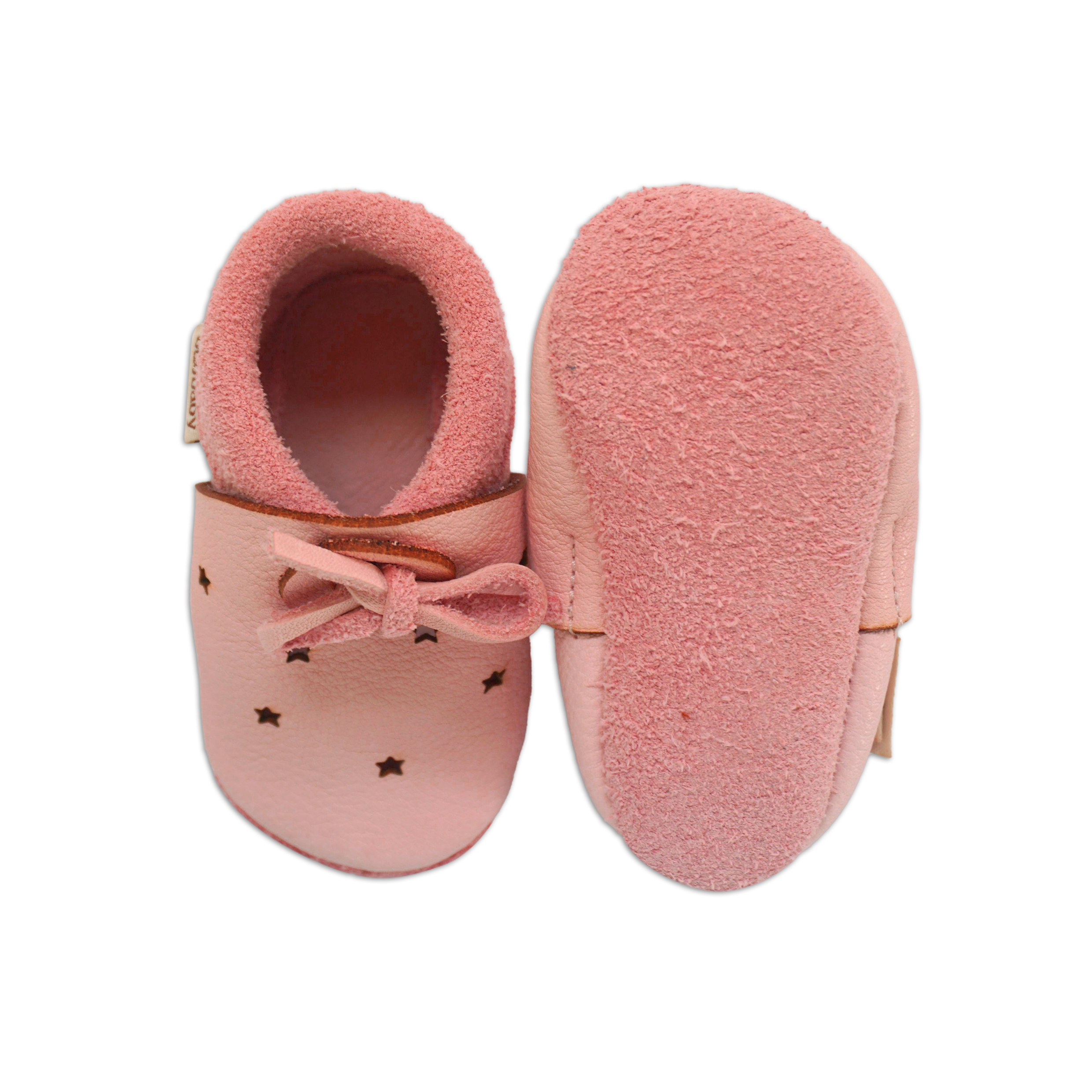 Kratki opis: "Super udobne cipelice za bebe idealne za puzanje, prve korake i djecu do 3 godine. Mekani potplati podržavaju prirodan razvoj stopala i bosonogo hodanje. Izrađene od vrhunske biljno štavljene prave kože, sigurne za dječja bosa stopala. Zahvaljujući veselim rupicama u koži ovog modela, cipelice su još prozračnije i udobnije! Idealan model za toplije dane i grijane prostore.