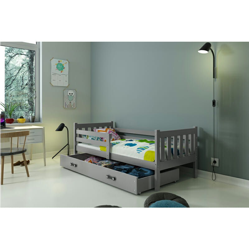Kratki opis: Dječji krevet CARINO je odlično rješenje za sve one koji cijene funkcionalnost, moderan dizajn, preciznost i kvalitetu izrade. Stabilna konstrukcija daje garanciju sigurnosti i udobnosti za vaše dijete. Cijela konstrukcija kreveta izrađena je od punog borovog drva.