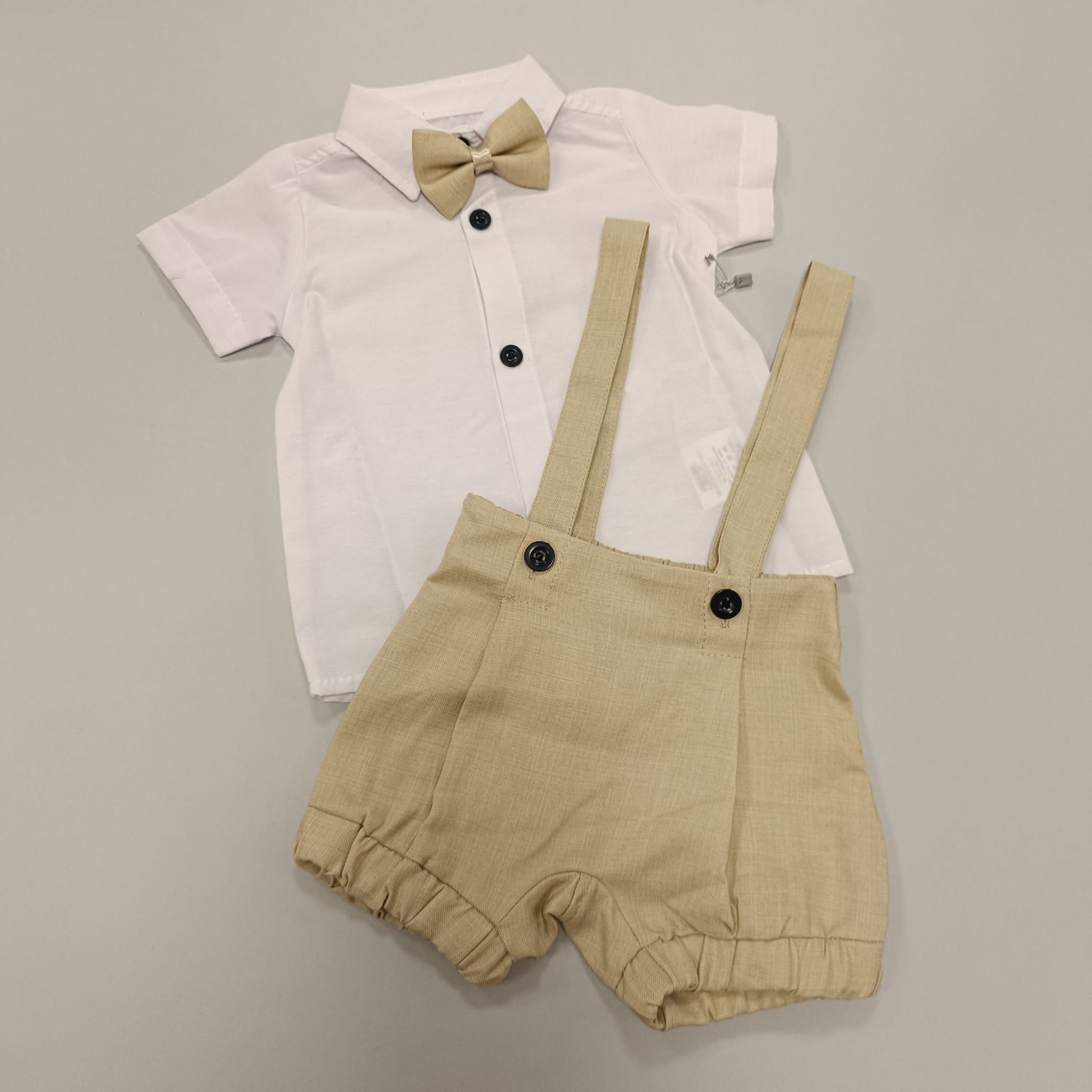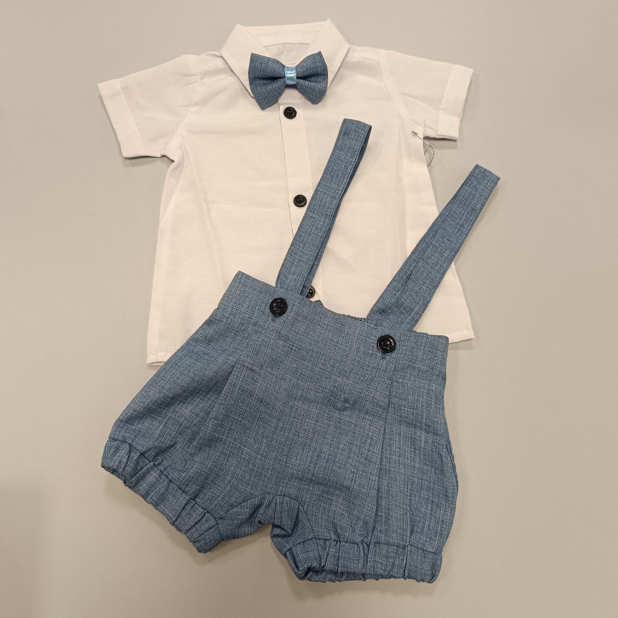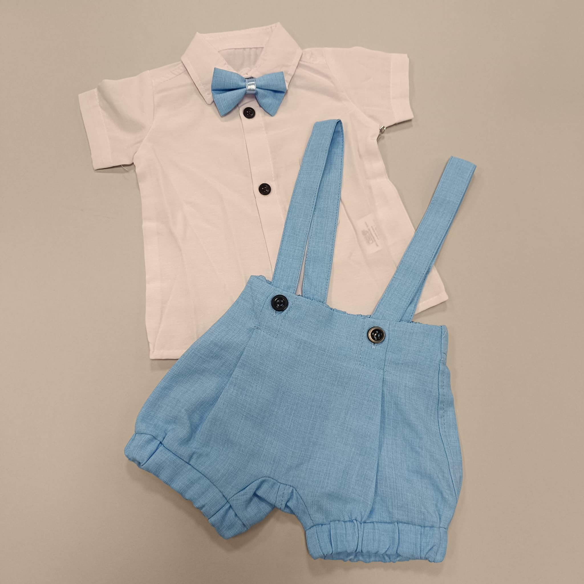 Svečano odijelo za dječake sadrži hlače, košuljicu, tregere i leptir mašnu.