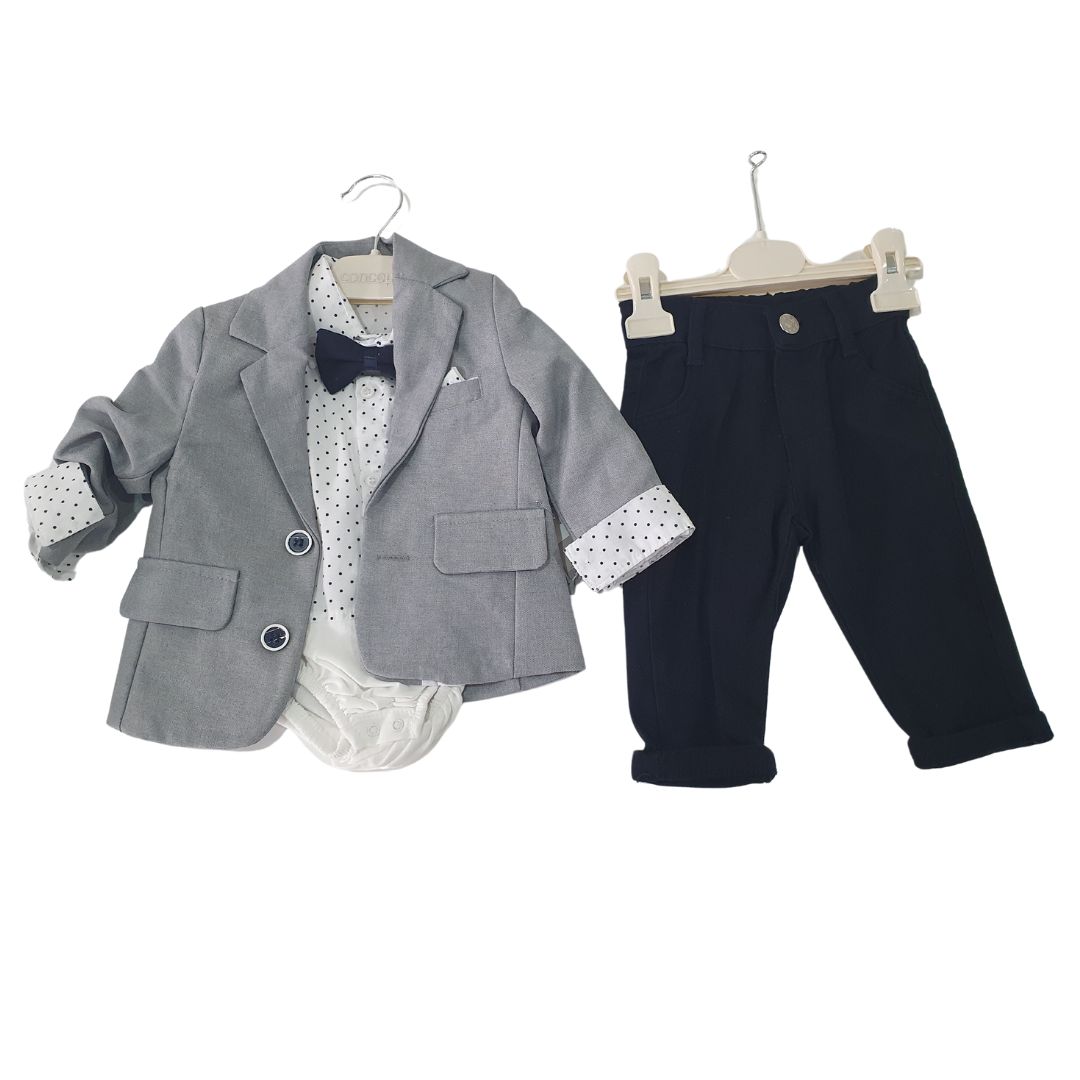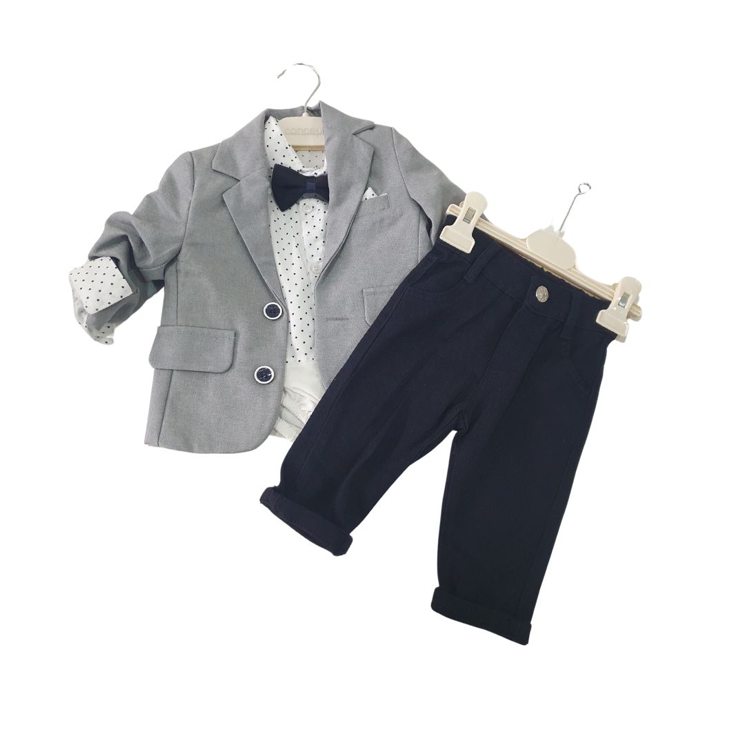 Odijelo za dječake za sve prigode, sastoji se od košulje, hlačica, sakoa i mašne.