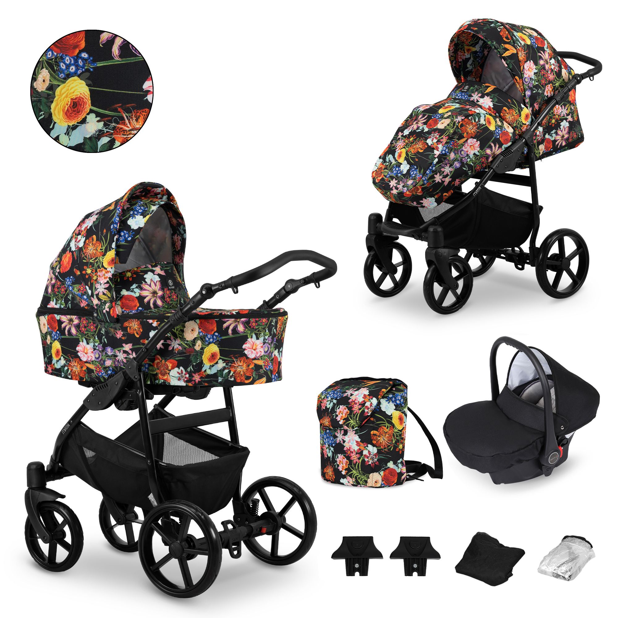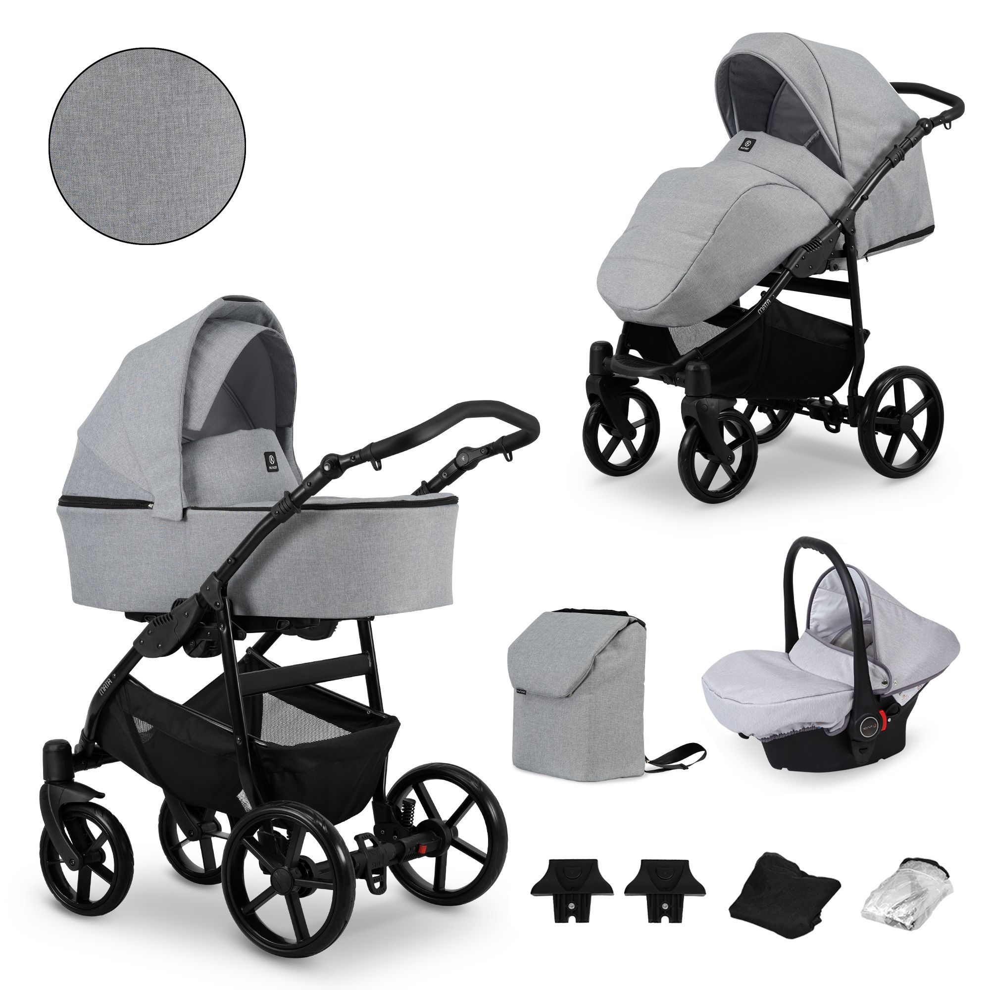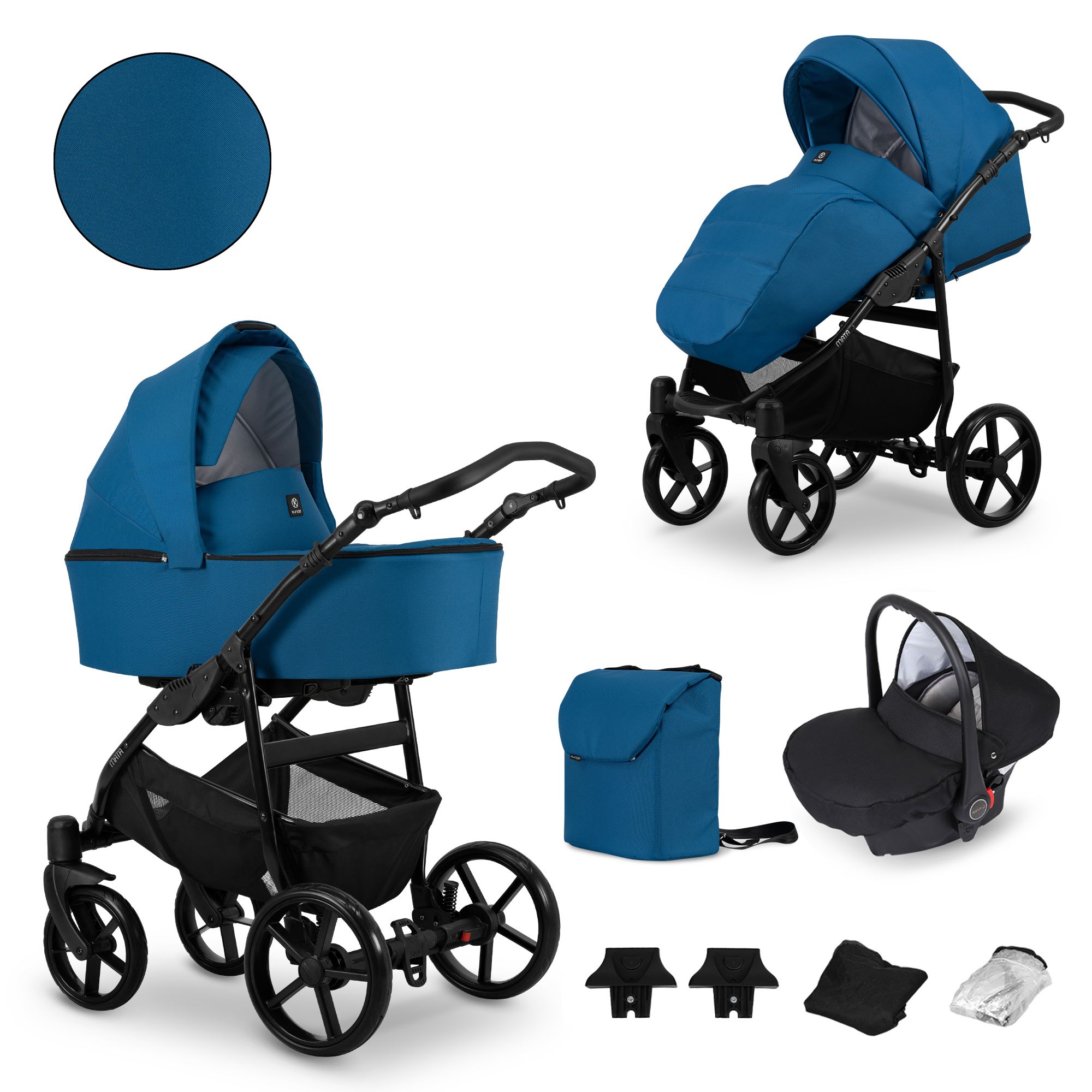 Kratki opis: MATA kolica – dizajnirana za najmlađe. Osigurat će udobnost i praktičnost tijekom korištenja od prvih dana života. Mogućnost odabira 10 boja na 3 različite boje kontrukcija.