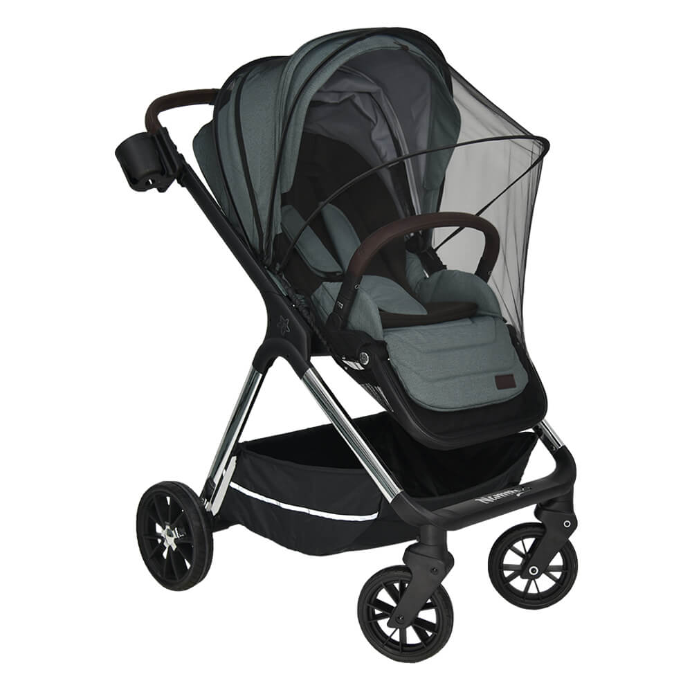-Uključuje navlaku za noge, mrežu protiv komaraca i kabanicu, koji štite dijete od hladnoće, insekata i kiše.