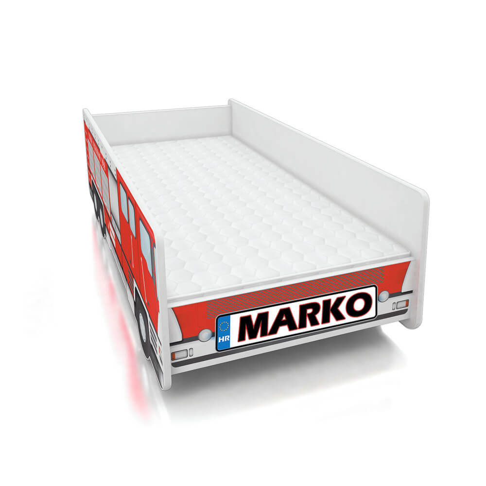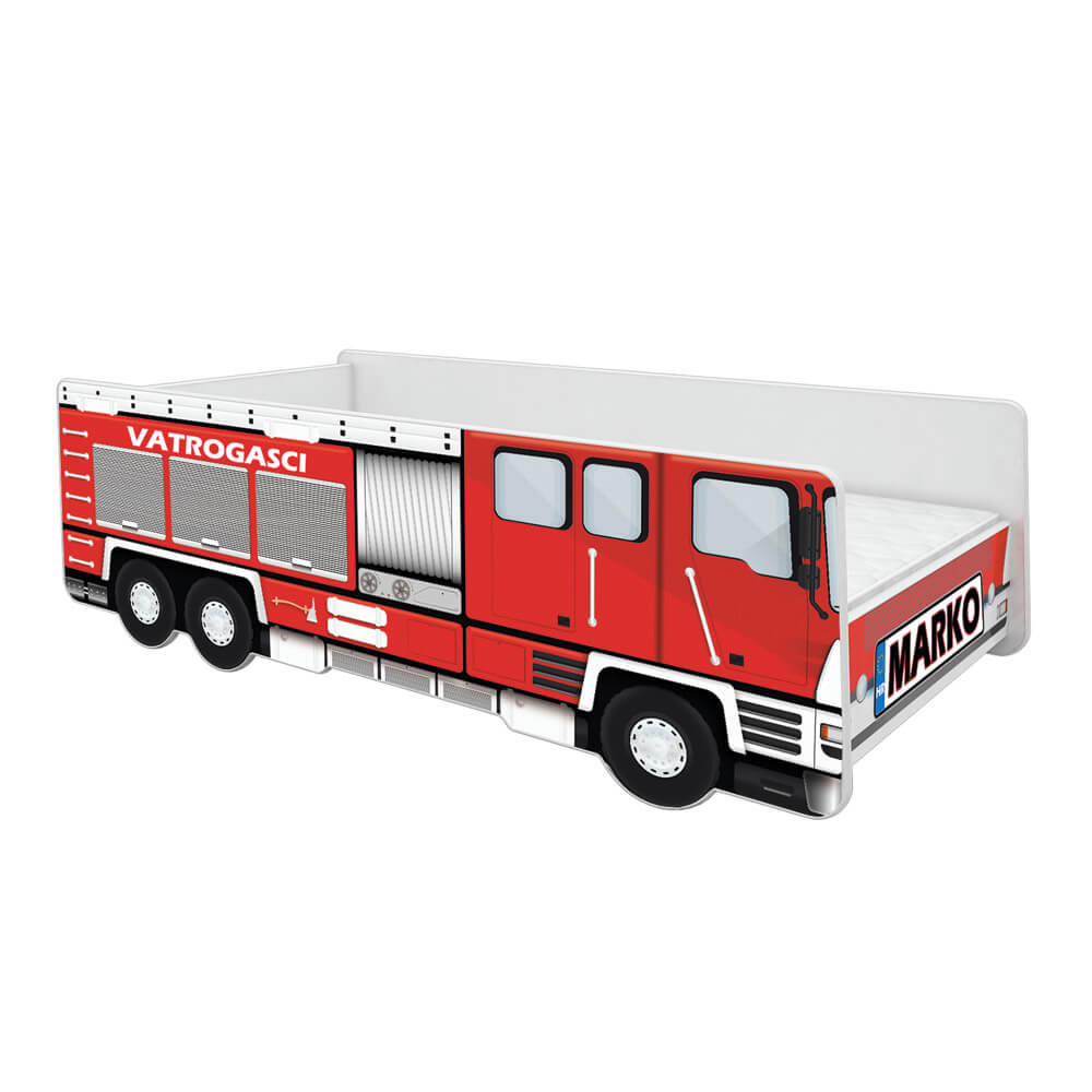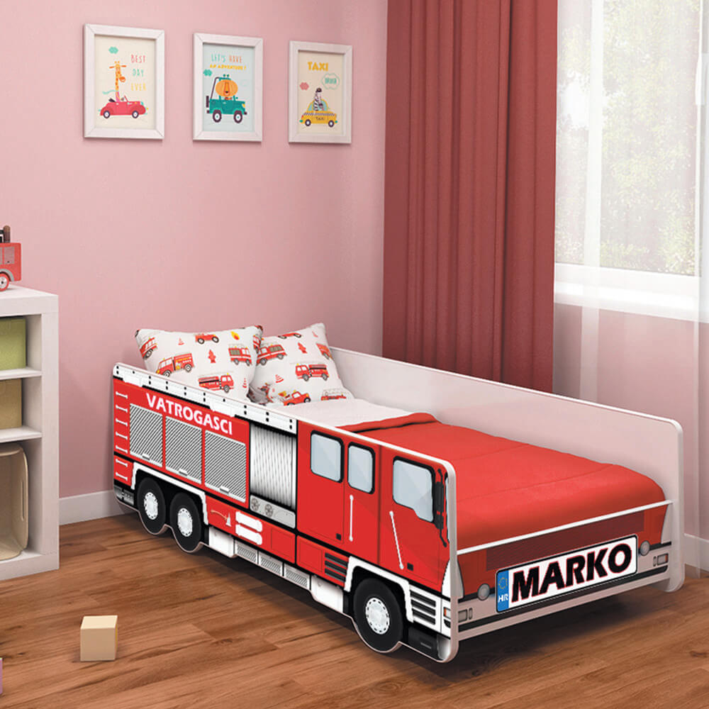 Predivni dječji krevetić u obliku vatrogasnog vozila. Krevetić je dostupan u dimenzijama 140×70, 160×80 i 180×80 cm, a u pakiranju su uključeni i podnica (letvice) te spužvasti madrac debljine 6/7 cm sa skidivom navlakom.