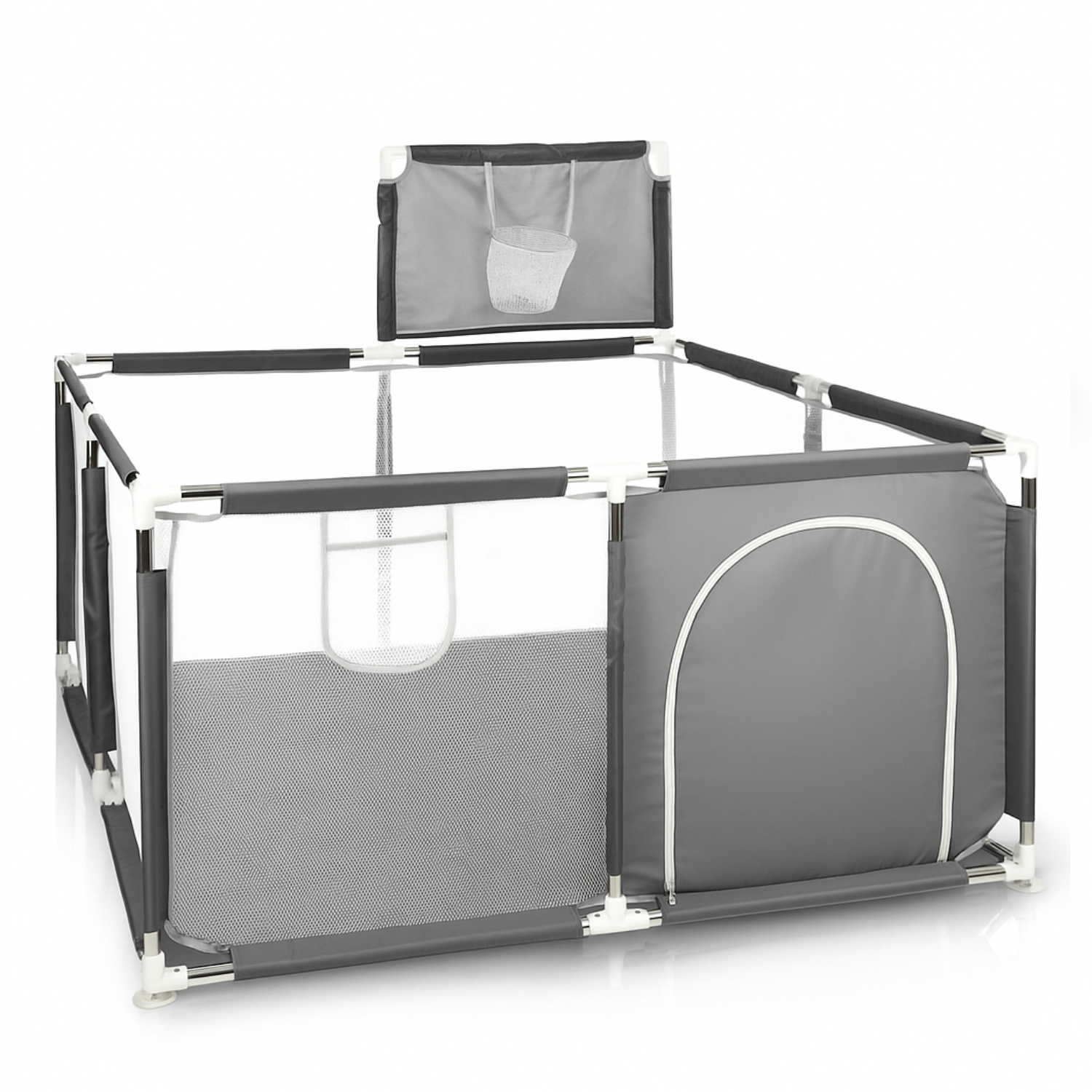 Okvir je lagan i izrađen od cijevi od nehrđajućeg čelika . Osim toga, ogradica ima košaru koja će zasigurno zabaviti vaše mališane. Cijela ogradica okružena je mrežom koja se lako čisti . Prozračna je i osigurava pravilnu cirkulaciju zraka. Prozirni materijal omogućuje vam da cijelo vrijeme pratite svoju bebu. Ogradica je prikladna za unutarnju i vanjsku upotrebu. Unatoč brojnim cijevima, sastavljanje je vrlo jednostavno.
