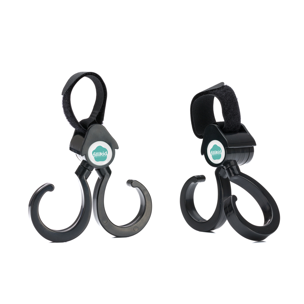 Kratki opis: Odlično rješenje za šetnje! Ove praktične kuke za torbu za kolica iz Fillikida nude mogućnost transporta bilo kakvih torbi i vrećica. Velcro čičak omogućava laku montažu na kolica.