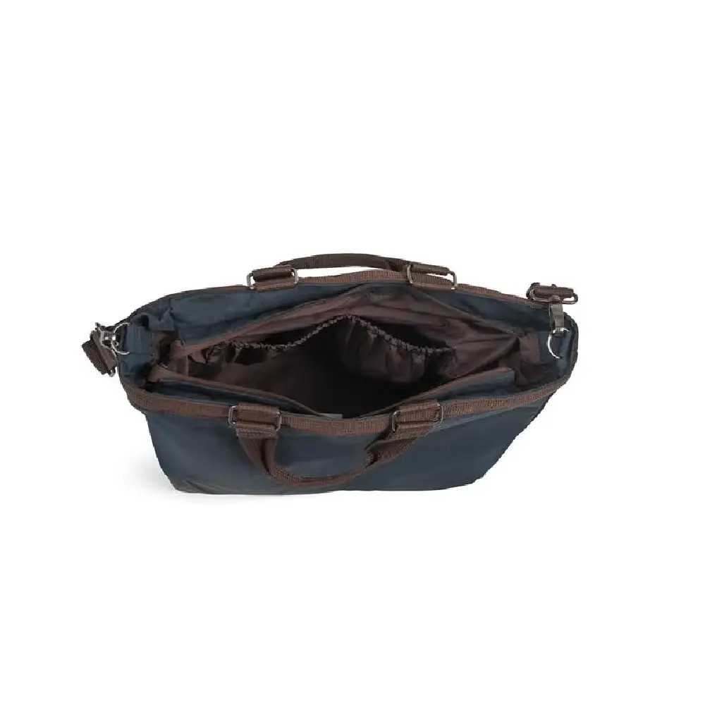 Torba za previjanje ima veliku unutrašnjost sa praktičnim pretincima u koje ćete moći nositi sve svoje potrepštine za sebe i bebu. Sa svake strane torbe nalazi se držač za boce koji ih drži na mjestu. Veliki džep s patentnim zatvaračem unutar torbe nudi dodatni prostor za sigurno držanje vaših osobnih stvari. Osim toga, uz torbu je uključena i odgovarajuća podloga za prematanje. Ova torba 2-u-1 može se lako pretvoriti u lijepu torbicu za svakodnevni život koju možete ponijeti kamo god idete.