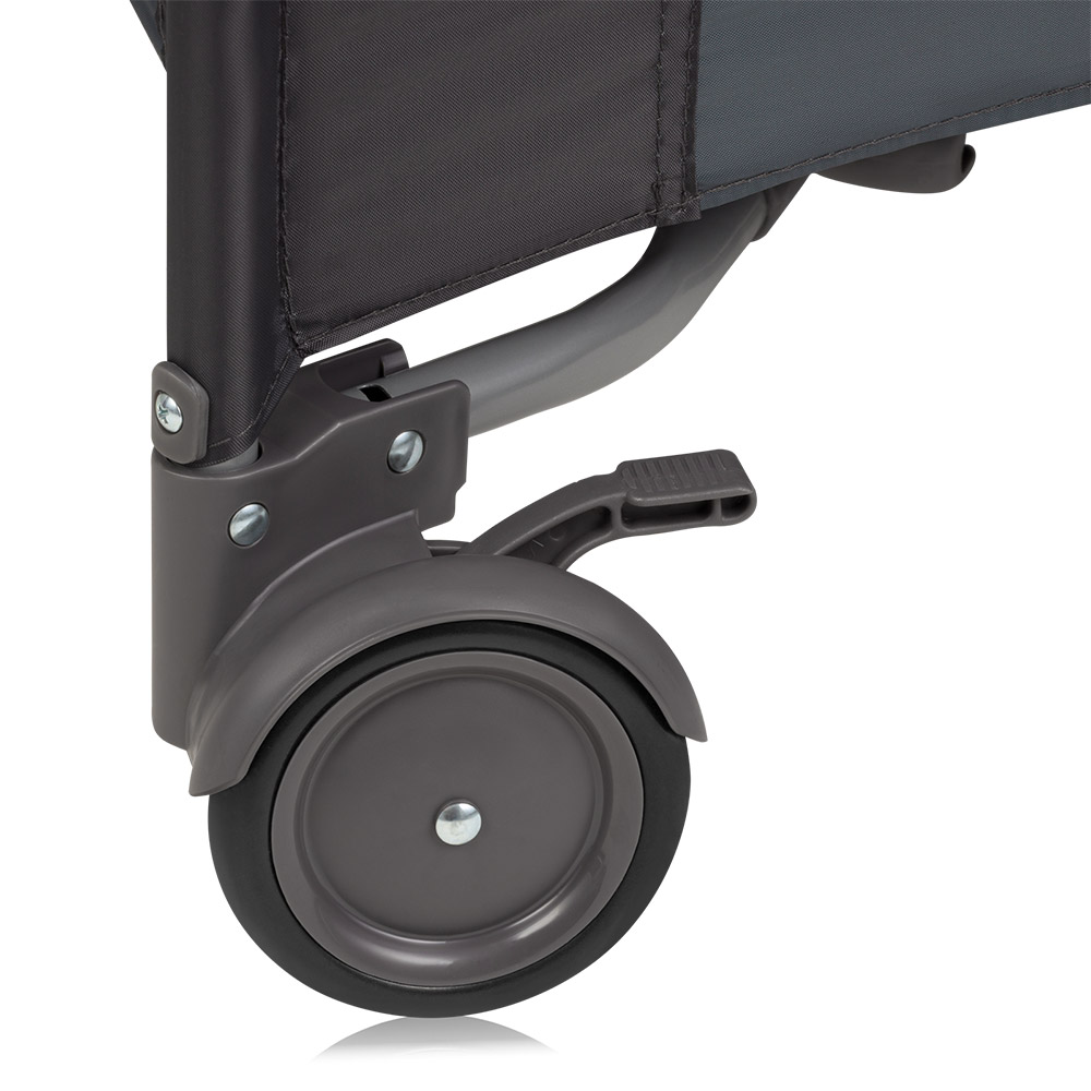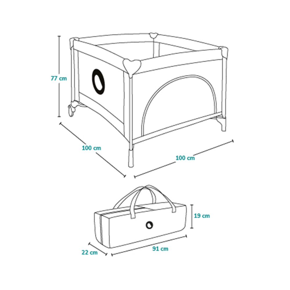 Brza i intuitivna metoda sklapanja čini proizvod izvrsnim za putovanja. Uključena je posebna torba za dodatnu jednostavnost transporta. Na dnevnoj bazi, dva kotača s kočnicom izvrsna su za slobodno pomicanje igraonice.