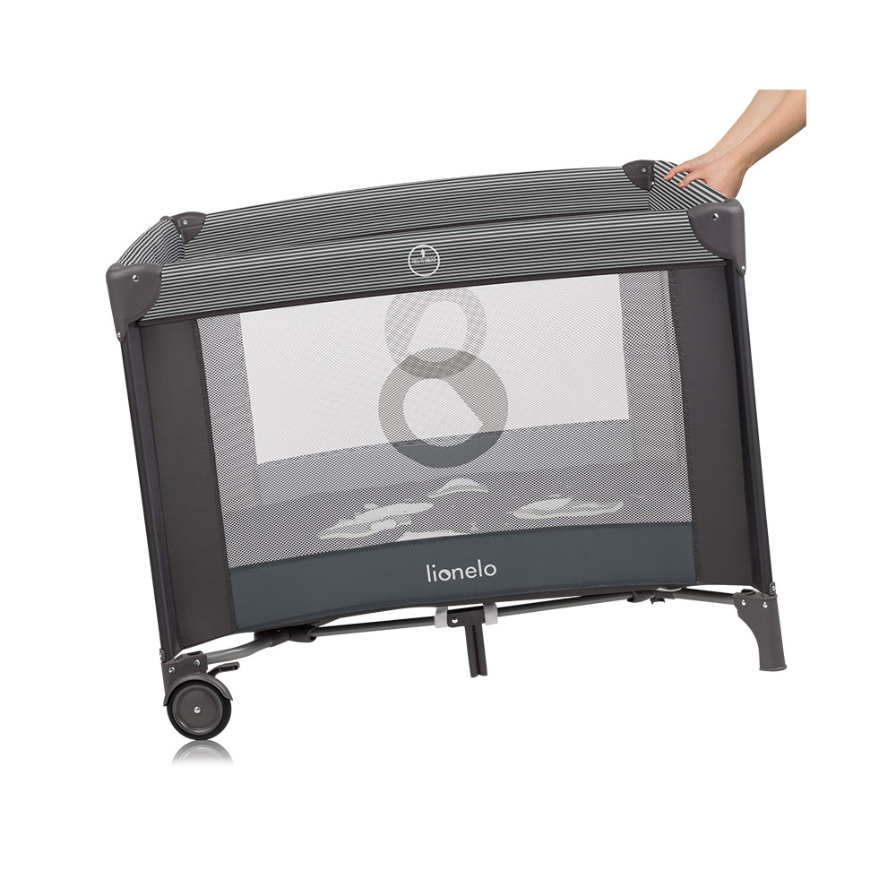 Lionelo Bonnie funkcionalna je dječja igraonica koja roditeljima omogućuje stvaranje sigurnog prostora za igru i odmor svojih mališana. Velika površina igraonice osigurava djetetu slobodu kretanja, dok jedan od bočnih ulaza s patentnim zatvaračem omogućuje starijoj djeci da samostalno uđu i izađu iz ogradice. Time se djetetu jamči velika doza neovisnosti, a roditelju olakšava brigu o djetetu jer ga ne mora svaki put stavljati i vaditi iz igraonice. Bočne strane izrađene su od posebne mreže koja jamči prozračnost i omogućuje održavanje kontakta očima između djeteta i roditelja. Ogradica također dolazi s posebnom podlogom gustoće T25, prilagođenim potrebama mališana. Dva kotača s kočnicama omogućuju lako kretanje prema trenutnim potrebama.