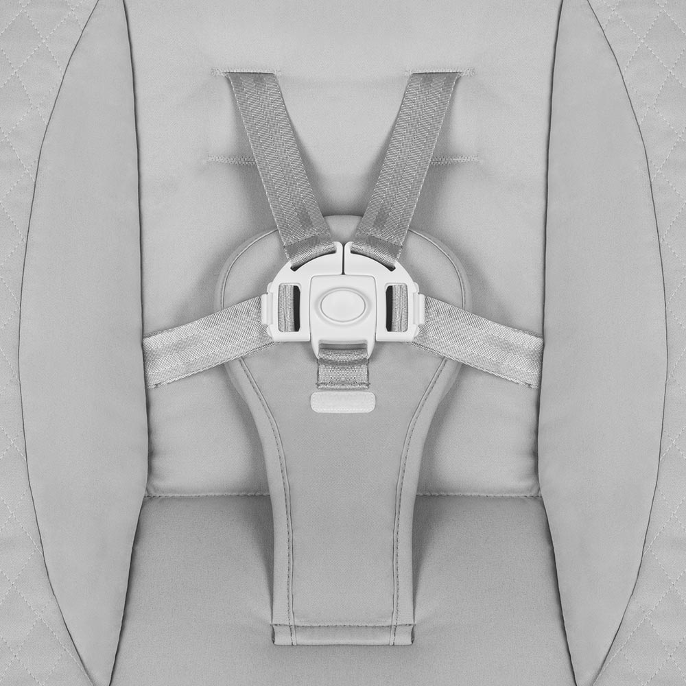 Dobro oblikovano široko sjedalo ne samo da nudi udobnost, već i olakšava postavljanje djeteta u ljuljačku. Pojas u pet točaka sa zaštitnom podstavom osigurava bebu u ljuljački. Ljuljačka je iznimno lagana, pa se bez napora može premjestiti na bilo koje mjesto, ovisno o potrebama. Protuklizne podloge postavljene na podlogu štite pod od grebanja. Uklonjiva presvlaka dizajnirana je za jednostavno čišćenje.