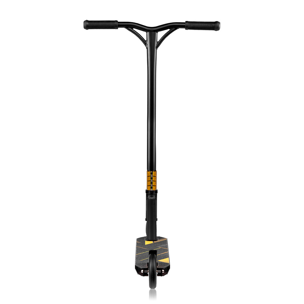 Ergonomski jednodijelni "Y" upravljač sa stezaljkom s 4 rupe osigurava pravilno držanje u vožnji i pruža vrhunsku ergonomiju za izvođenje trikova i vožnju bez napora. Posebni gumeni držači sprječavaju klizanje ruku. Prostrano postolje osigurava udoban položaj stopala.