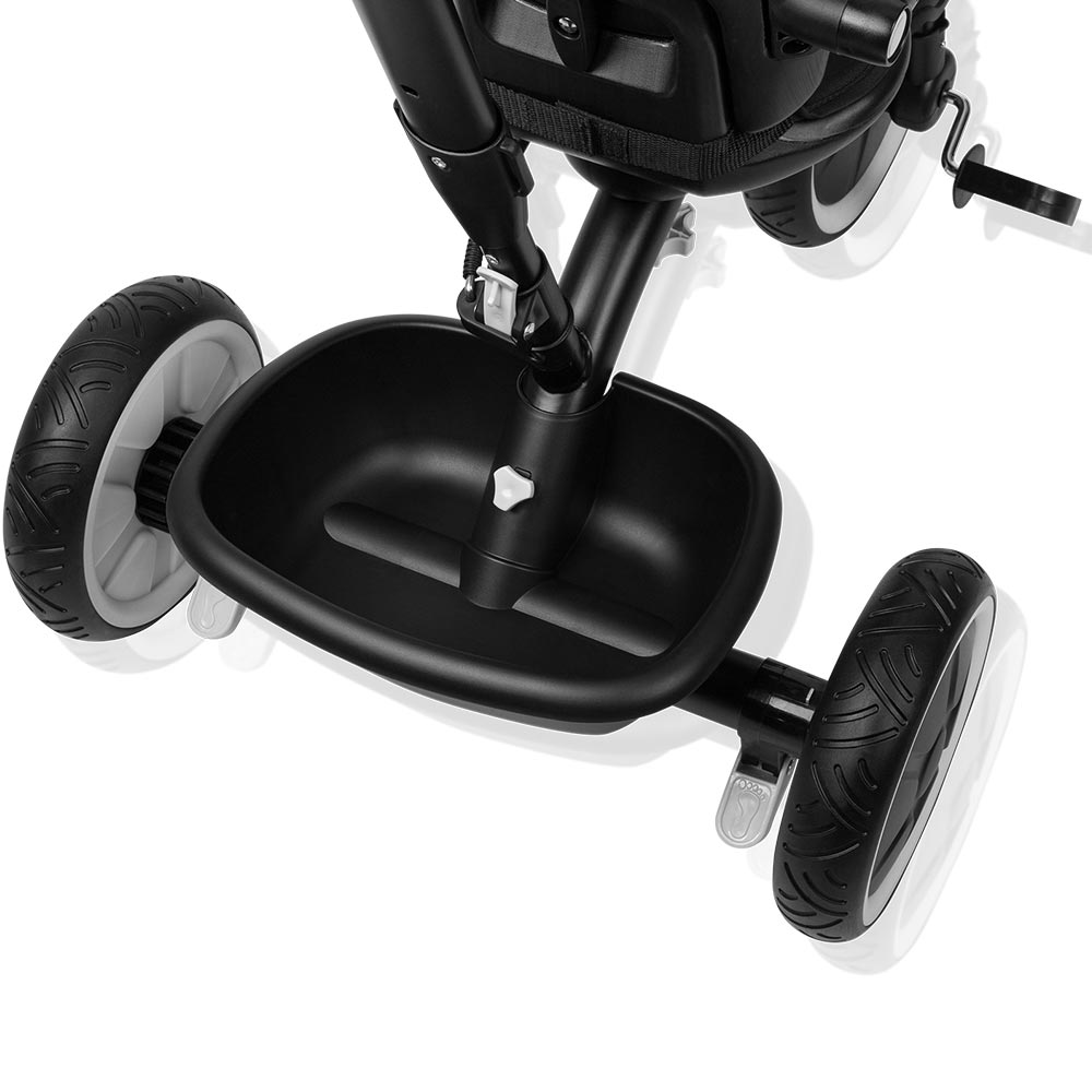 Zahvaljujući podesivoj ručki za upravljanje (82–100 cm), tricikl se može prilagoditi visini roditelja. Stražnji kotači opremljeni su zasebnim kočnicama koje roditeljima omogućuju zaključavanje kotača. Sustav upravljanja preko ručke za upravljanje osigurava roditeljima potpunu kontrolu nad kretanjem tricikla.