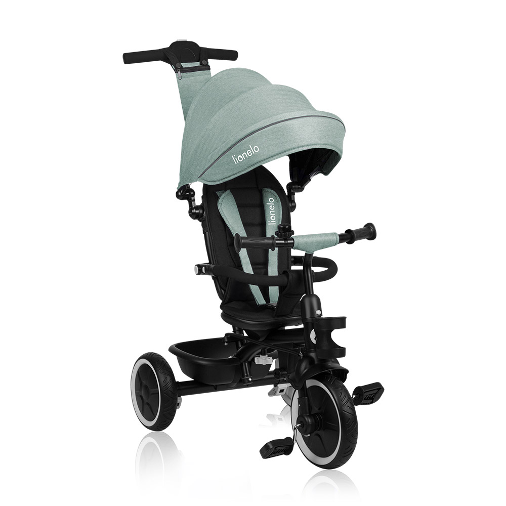 Lionelo Berry 2u1 tricikl namijenjen je djeci od 9 mjeseci do oko 5 godina, odnosno do težine od 25 kg. Veliki PU kotači koji su laki za održavanje osiguravaju glatku vožnju na različitim terenima, a prilagodljiva ergonomska ručka za upravljanje roditeljima olakšava šetnje s djecom. Sjedalo koje se okreće za 360° može se prilagoditi željama i potrebama vašeg djeteta. Tricikl raste s djetetom i prilagođava se svakom uzrastu. Značajka slobodnog hoda omogućuje djetetu slobodno pedaliranje bez ometanja tempa i smjera vožnje. Zahvaljujući ručki za upravljanje roditelj može kontrolirati smjerom vožnje. Proizvod se sastavlja bez napora i dodatnih alata – cijela se struktura može sastaviti jednim klikom.
