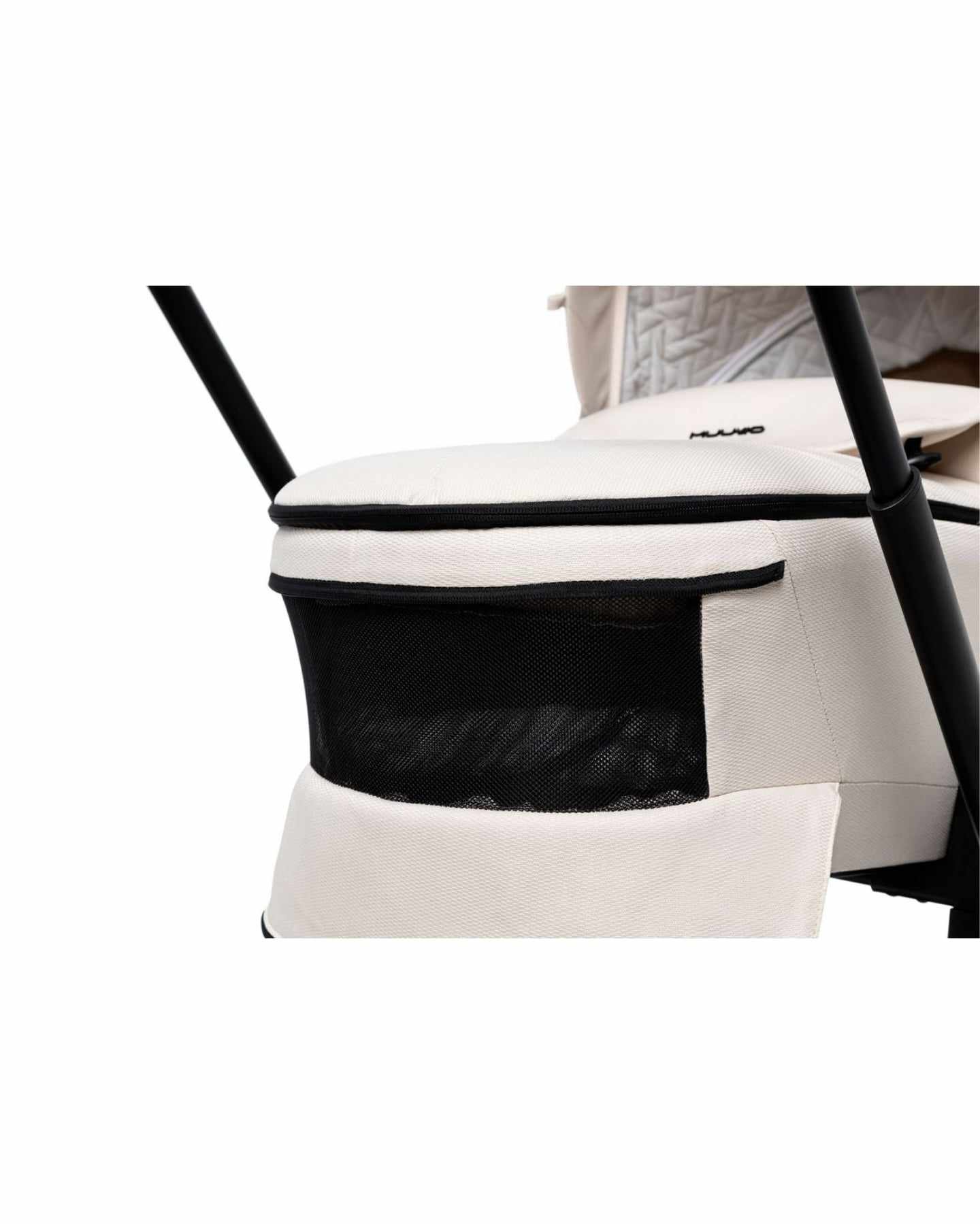 Produljena nosiljka, koja se može montirati izravno na okvir ili na dodatne adaptere za visinu, opremljena je sustavom Memory Buttons, koji omogućuje udobno i sigurno otkopčavanje jednom rukom. Imajući na umu roditelje, poboljšali smo i sustav postavljanja torbe na teleskopsku ručku kolica – komplet dodatne opreme uključuje dodatne trake, zahvaljujući kojima možete odabrati njen odgovarajući položaj.